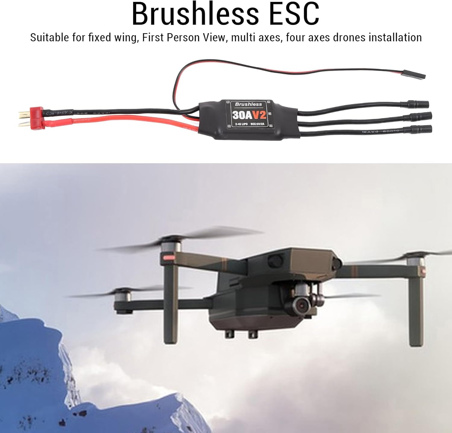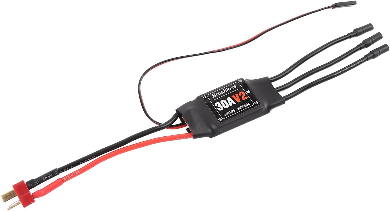 Costruzione robusta: questo controller di velocità senza spazzole a motore RC è realizzato in materiale di plastica e rame premium, con costruzione robusta e prestazioni costanti per un uso a lungo termine. Applicazione: Brushless ESC 30A V2 è progettato vasta gamma di applicazioni come aeroplani ad ala fissa, configurazioni di visione in prima , droni multi-asse e quadricipiti, È una scelta versatile varietà di progetti RC. Una scelta versatile varietà di progetti RC. Caratteristiche protettive: questo senza spazzole è dotato di meccanismi di protezione avanzati per garantire sicurezza e longevità. Include una protezione di tensione di ingresso anormale, protettore di surriscaldamento e taglio a bassa tensione per proteggere l'ESC da danni e prolungare la sua vita. Connessione semplice: questo controller senza spazzole presenta una spina di tipo T e una spina femmina banana da 3,5 mm, che rende facile e sicuro per collegare il motore e la batteria Lipo. Alimentazione stabile: l'EST senza spazzole 30A fornisce energia al ricevitore e ai servi, garantendo stabilità e prestazioni superiori durante il volo, permettendoti di controllare l'aereo RC o il drone senza intoppi e con precisione.