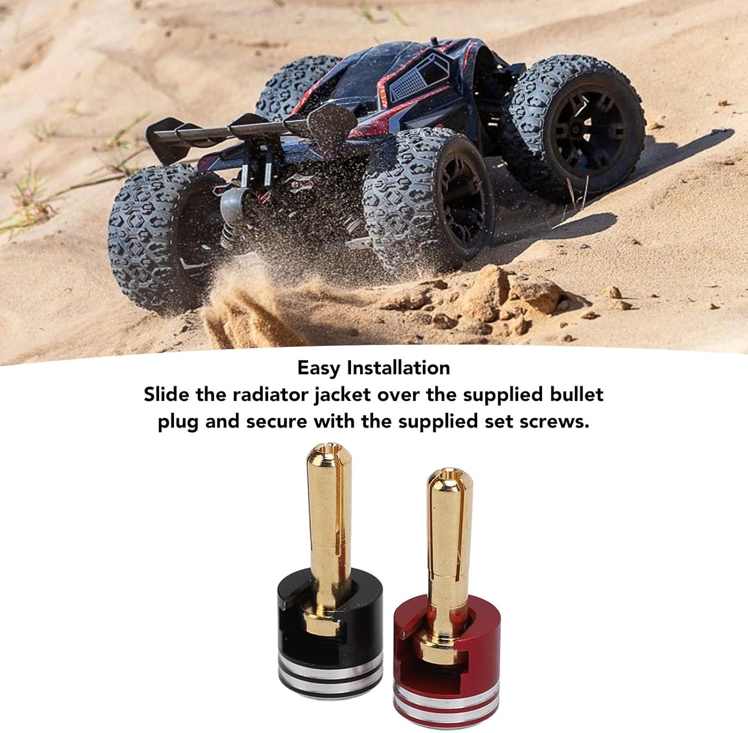 [Robusto e durevole]: realizzato in lega di alluminio e rame di alta qualità, questo tappo per batteria RC è resistente all'usura e garantisce una lunga durata. [Installazione semplice]: il rivestimento del radiatore scorre senza sforzo sul tappo a proiettile, fissato con viti di fissaggio per 'installazione senza problemi. [Compatti e portatili]: leggeri e di piccole dimensioni, questi tappi e impugnature per dissipatori di calore sono comodi per l'installazione, l'uso e il trasporto. [Ampia applicazione]: con 'ampia gamma di usi, questi connettori a banana con proiettile del dissipatore di calore sono ideali per le modifiche alle auto RC e le riparazioni dei giocattoli. [Buona compatibilità]: compatibile con vari veicoli e batterie RC, rendendolo versatile e adatto a diversi modelli.
