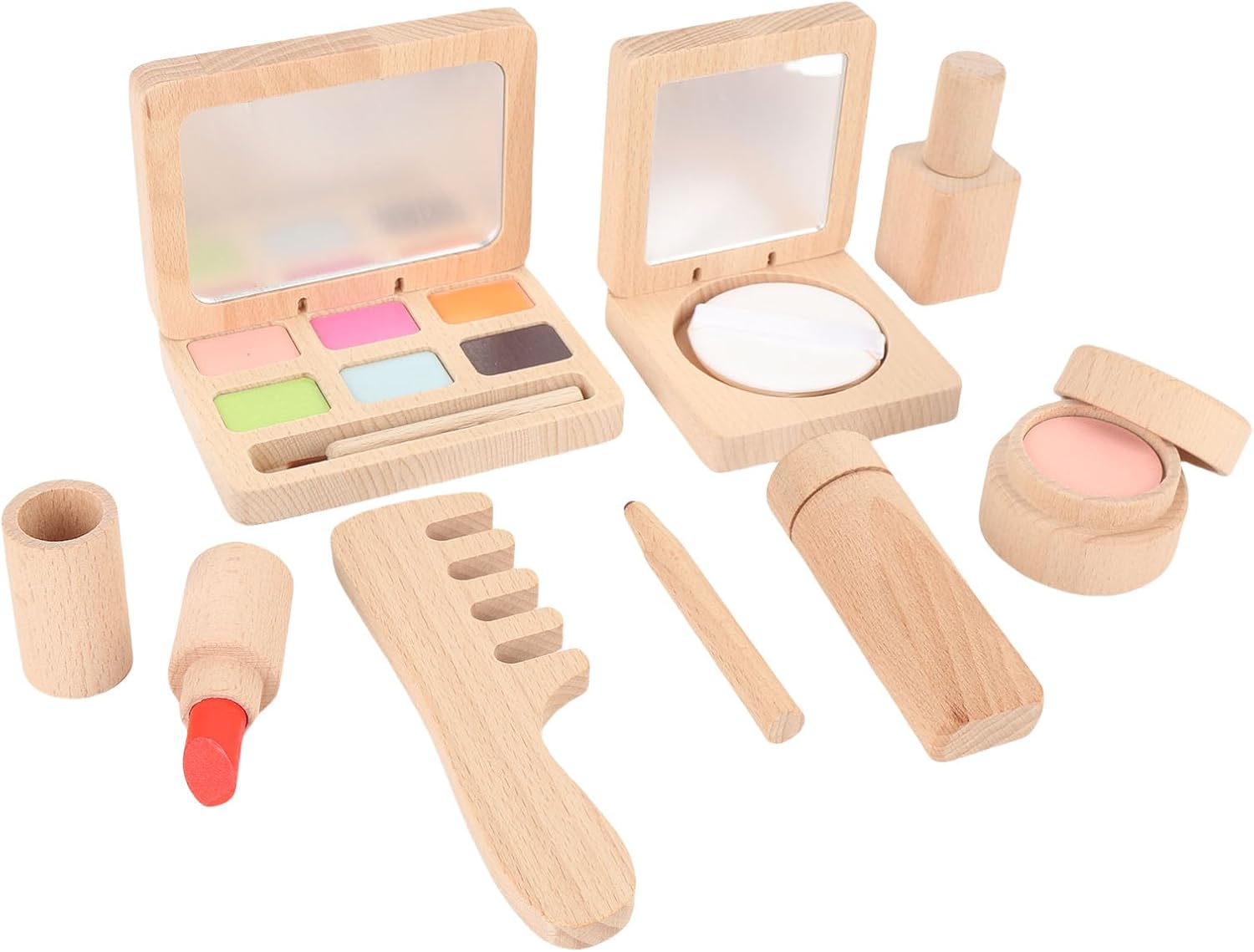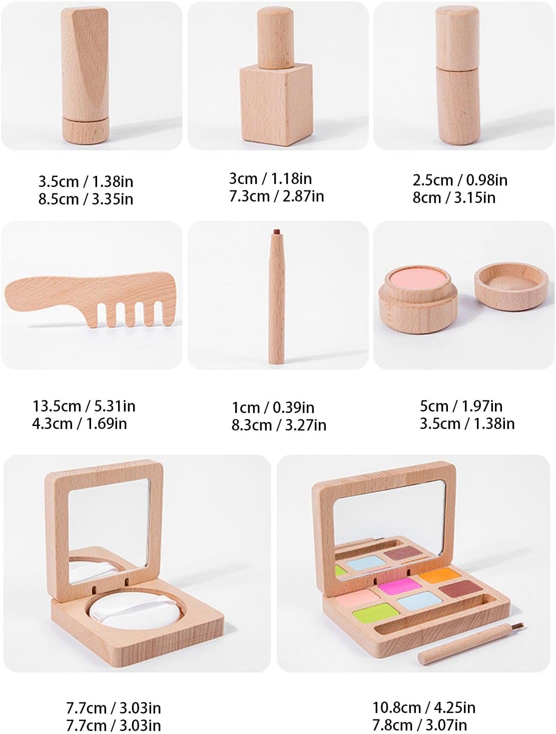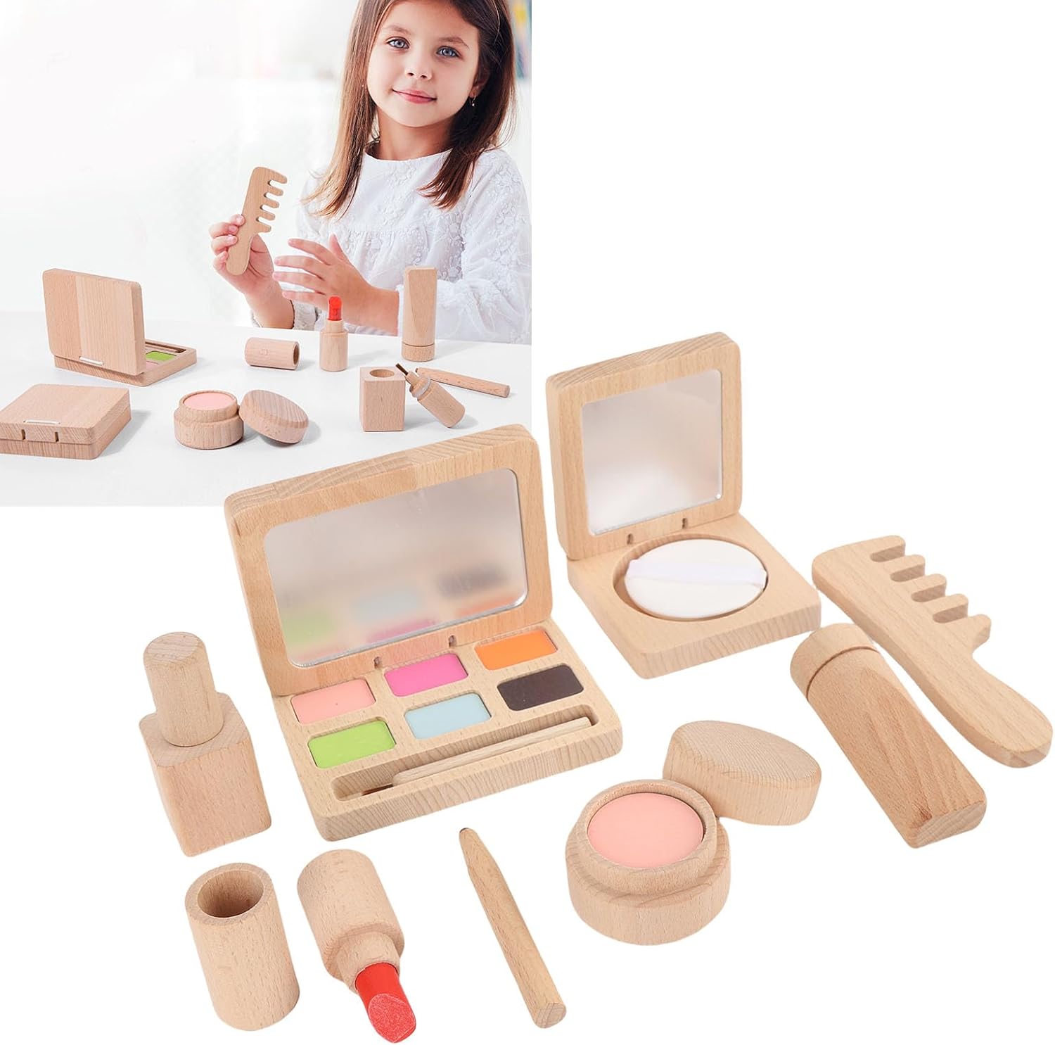 [Sviluppa abilità ] I giocattoli per il trucco per bambini sono progettati per simulare i cosmetici reali, aiutando i bambini a sviluppare creatività e belle capacità motorie. Il set colorato e diversificato incoraggia il gioco fantasioso, permettendo ai bambini di esprimere la propria individualità mentre si divertono. per favorire le abilità di applicazione del trucco precoce in un ambiente sicuro e giocoso. [Materiale in legno premium] Realizzato in legno di faggio di alta qualità, questo set di giocattoli per il trucco è robusto, sicuro e resistente. I materiali non tossici assicurano un gioco senza preoccupazioni per i genitori, mentre i bordi lisci e il design leggero lo rendono ideale per le mani piccole. Una scelta affidabile per il gioco finto di lunga durata. [Set di cura della pelle completa] Questo kit completo include schiuma di pulizia, smalto per unghie, rossetto, pettine, matita per sopracciglia, fard, polvere compatta e tavolozza di ombretti. Ogni pezzo è realisticamente progettato per imitare i cosmetici reali, fornendo una pretenda immersiva l'esperienza di gioco che stimola la gioia e la creatività nelle giovani menti. [Facile da pulire e conservare] I giocattoli per il trucco in legno presentano una superficie liscia che è facile da pulire, mantenendo l'igiene durante il gioco. La dimensione compatta di ciascun articolo rende comodo lo stoccaggio, mentre la robusta costruzione resiste alla manipolazione ruvida del bambino. Una scelta pratica per i genitori impegnati in cerca di giocattoli a bassa manutenzione. [Scelta perfetta] Ideale per compleanni, vacanze o occasioni speciali, questo set di trucco fa un ponderato che i bambini apprezzeranno. L'imballaggio attraente e il valore educativo si combinano per creare un dono che delizia sia i bambini che i genitori. Progettato per ispirare ore di gioco creativo e ricordi felici.