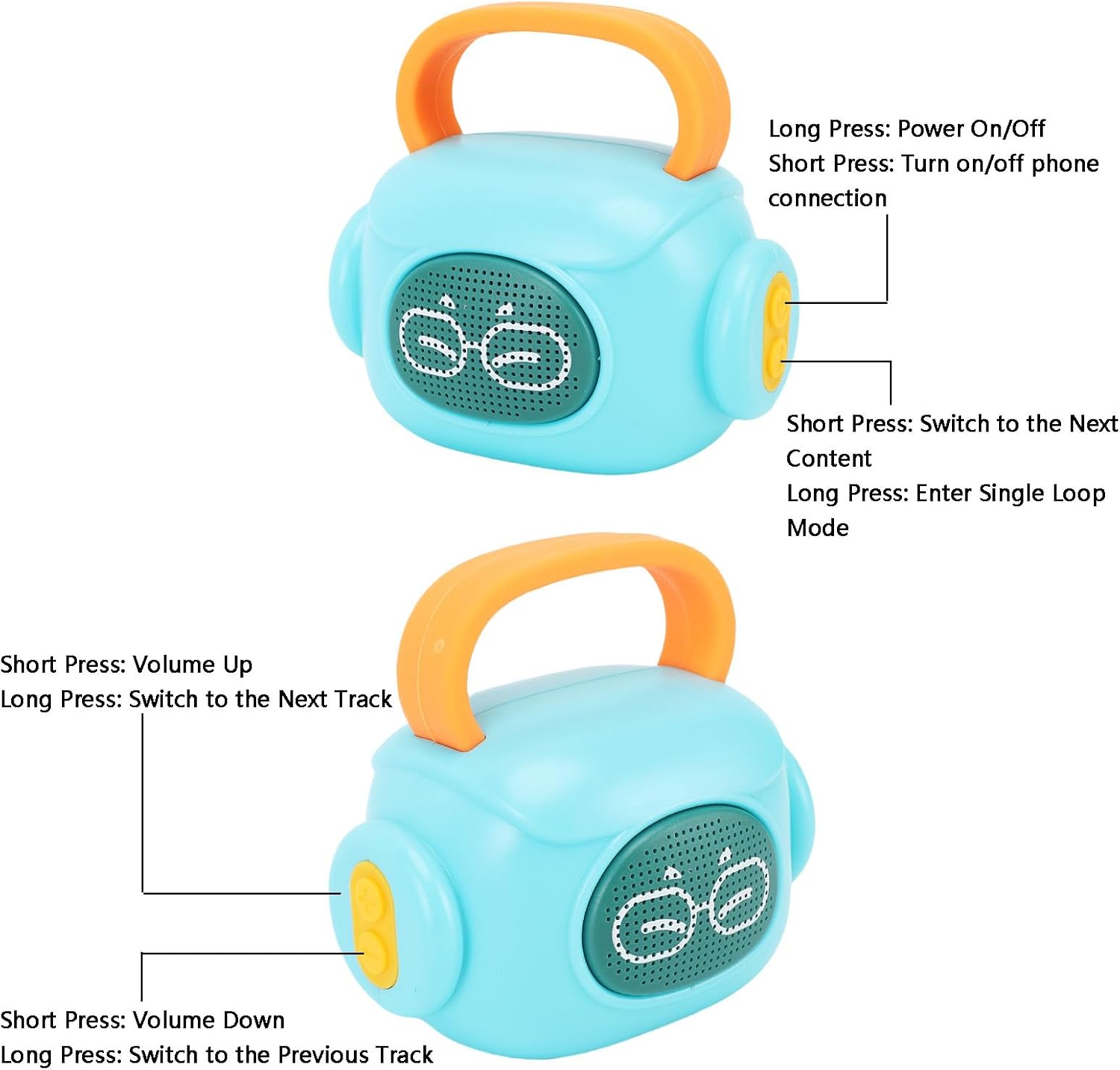 Dimensioni portatili e mini: compatto e leggero, questo lettore musicale è facile da trasportare per i bambini ovunque. Le sue mini dimensioni si adatta perfettamente a piccole mani, permettendo ai bambini di imparare e giocare in viaggio, a casa, in macchina o durante il viaggio Contenuto di storie ricche e diverse: pieno di un'ampia varietà di storie e canzoni, questo giocatore stimola la curiosità e l'entusiasmo dei bambini per l'apprendimento. Il contenuto divertente li tiene coinvolti mentre migliorano le loro abilità linguistiche in modo naturale Ottimi regali per bambini: questo lettore musicale per bambini fa un compleanno premuroso ed educativo o regali per le vacanze. Combina divertimento e apprendimento, aiutando i bambini a scoprire la gioia dell'educazione mentre si godono le loro storie e melodie preferite Strumento di apprendimento dell'inglese multifunzionale: progettato come una piattaforma coinvolgente per l'illuminazione della lingua inglese, questo dispositivo aiuta i bambini a migliorare rapidamente la loro conoscenza. Con contenuti interattivi e attività divertenti, trasforma l'apprendimento in un'esperienza piacevole che i bambini adoreranno Bluetooth Connection & Easy Usage: questo lettore musicale per bambini si collega perfettamente ai dispositivi mobili tramite Bluetooth, fornendo un modo semplice ai bambini di godersi la musica e i contenuti educativi. La funzione wireless garantisce comodità e flessibilità, rendendola eccezionale sia per la casa che per l'uso esterno