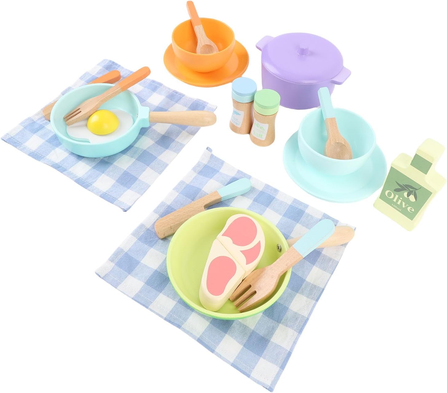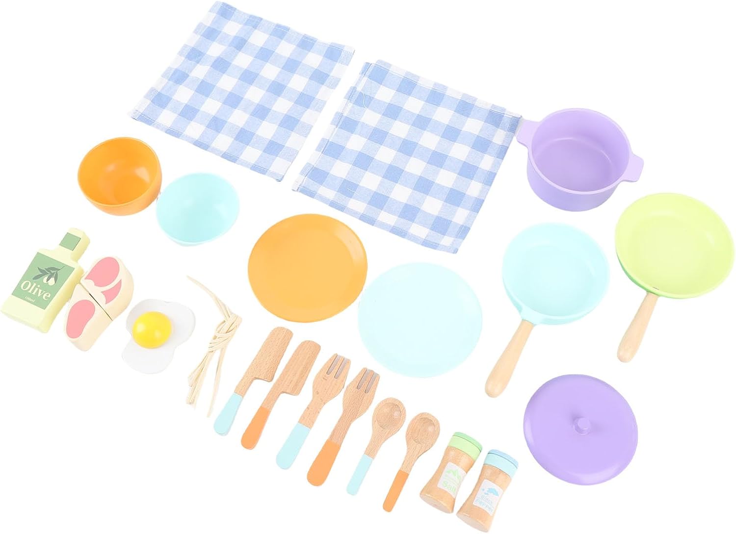 [Include varietà di pezzi] Set di cottura in legno a 20 pezzi con utensili per basswood per scenari di gioco realistici [Ispira l'immaginazione] Gli oggetti di scena colorati ispirano il gioco di ruolo culinario e facilitano lo sviluppo delle abilità motorie nei giovani chef [Design a favore dello spazio] Pieni compatti Organizzano facilmente su ripiani o in cucine per le Box/Cover delle bambole per un deposito pulito [Migliora il legame familiare] promuove l'interazione genitore-figlio attraverso la condivisione di giochi e il servizio con tovaglioli di cotone [Costruzione durevole] pentole e padelle da zuppa a taglio liscio assicurano sessioni di gioco di lunga durata per un divertimento senza fine