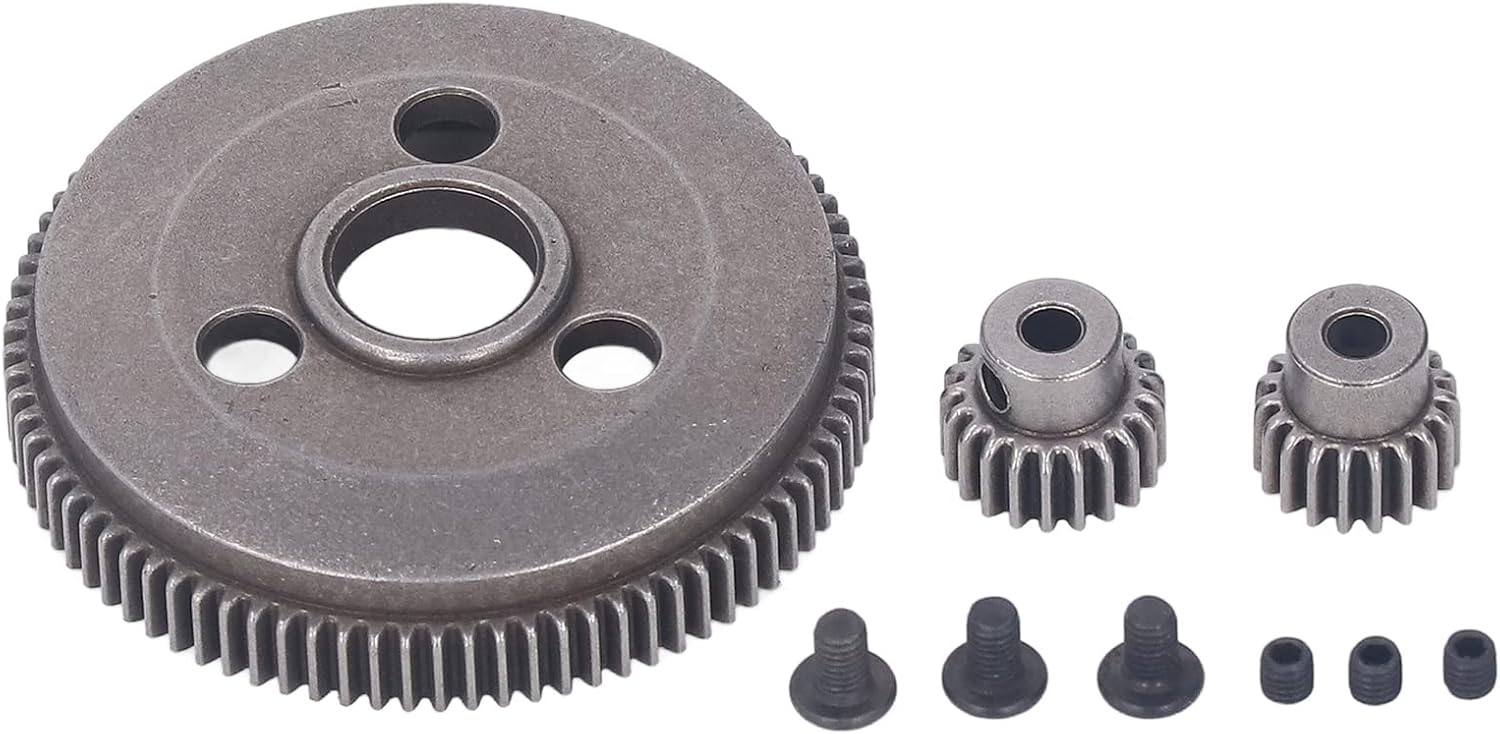 Stile libero: la velocità dipende dalla tua razione di marcia. Forniamo 2 diversi pignoni (19T e 21T) per offrirti più scelte nella razione del cambio. Cosa otterrai: questo set di ingranaggi RC viene fornito con 3 viti per macchina e 3 viti per ogni ingranaggio RC, perfettamente abbinabili, facili da installare. Molteplici applicazioni: questo set di ingranaggi RC è adatto per Slash 2WD 1/10, per Rustler 2WD, per Stamped 2WD, Cosa otterrai: questo set di ingranaggi RC viene fornito con 3 viti per macchina e 3 viti per ogni ingranaggio RC, perfettamente abbinabili, facili da installare. Materiale in acciaio: questi ingranaggi RC sono realizzati in acciaio metallico temprato ad alta resistenza, rotolano dolcemente, antiusura e possono essere utilizzati a lungo.