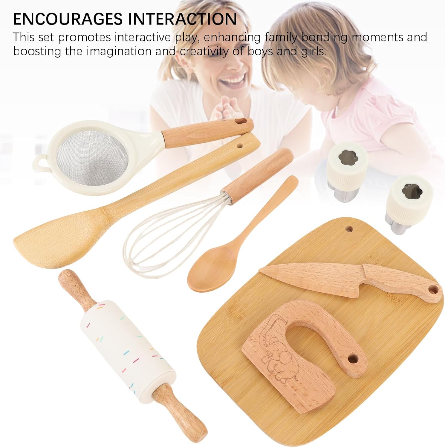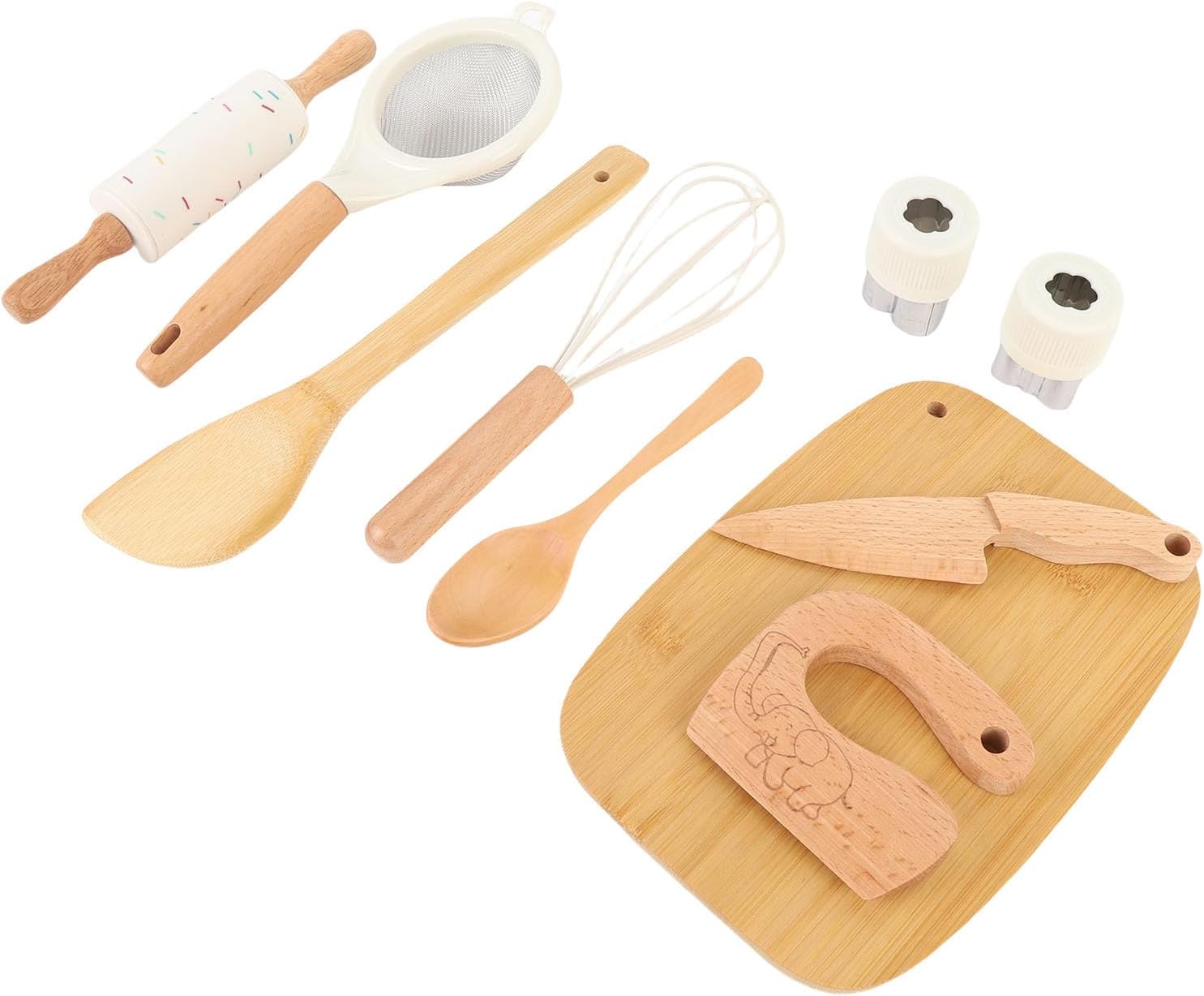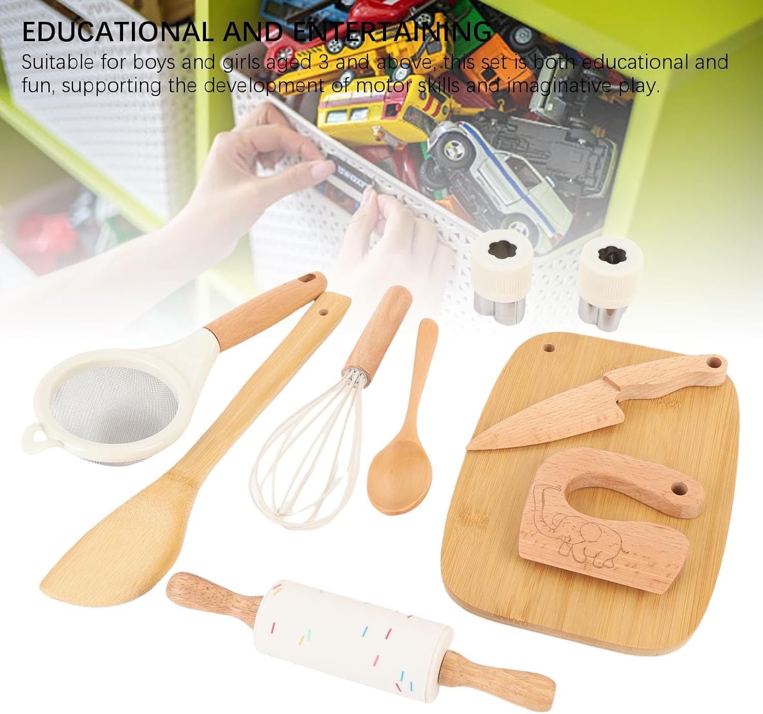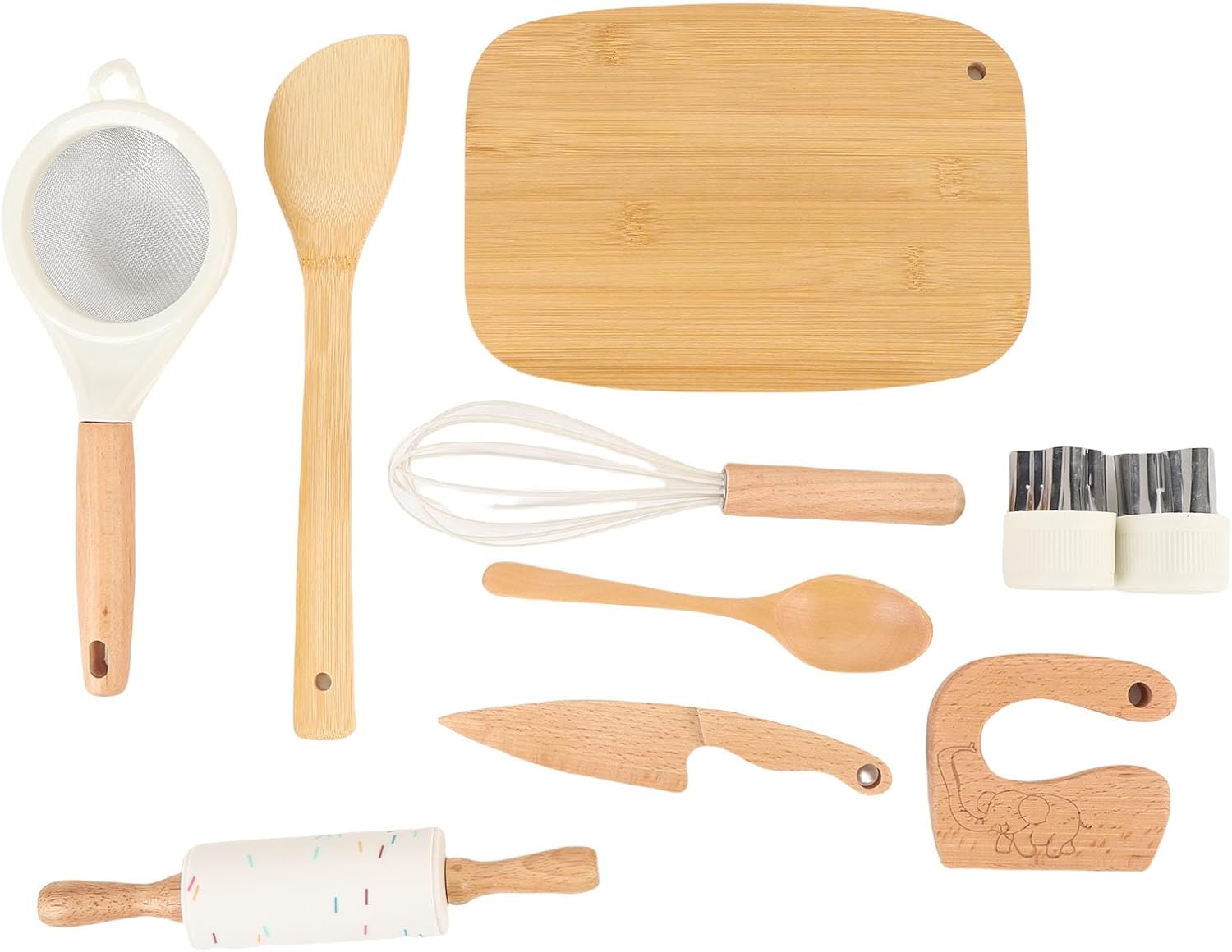 [Set da cucina da gioco finto completo] Questo set completo di coltelli per bambini in legno comprende 10 pezzi essenziali come un perno di rotolamento del cucchiaio da tagliere e altro ancora per fornire infinite ore di gioco fantasioso. per i piccoli chef che amano imitare veri scenari di cucina mentre sviluppano abilità di vita essenziali in modo divertente e coinvolgente. [Design sicuro e resistente] Realizzati in legno di faggio di alta qualità Questi giocattoli da cucina sono costruiti per resistere al gioco rigoroso garantendo al contempo la sicurezza completa per i bambini. I bordi lisci e la costruzione robusta li rendono ideali per le piccole mani che offrono un tempo di gioco senza preoccupazioni per genitori e bambini. [Benefici educativi e di sviluppo] progettati per i bambini di età pari o superiore a 3 anni promuove il coordinamento di Handye e il pensiero creativo per lo sviluppo motorio. Gli strumenti realistici della cucina incoraggiano lo sviluppo cognitivo attraverso il pretendente gioco che rende l'apprendimento divertente e interattivo. [Incoraggia l'interazione sociale] Questo Playset promuove il prezioso tempo di legame familiare mentre i bambini si impegnano in attività di cucina collaborativa con genitori o amici. La natura interattiva del set aiuta a sviluppare le capacità comunicative e il lavoro di squadra mentre scatenano esperienze gioiose condivise. [Strumenti da cucina realistici di alta qualità] Ogni pezzo di questo set è attentamente progettato per assomigliare a veri utensili da cucina che danno ai bambini un'esperienza di cottura autentica. La finitura in legno naturale e il dimensionamento proporzionato rendono questi strumenti perfetti per le mani piccole mantenendo un aspetto e un aspetto realistici.
