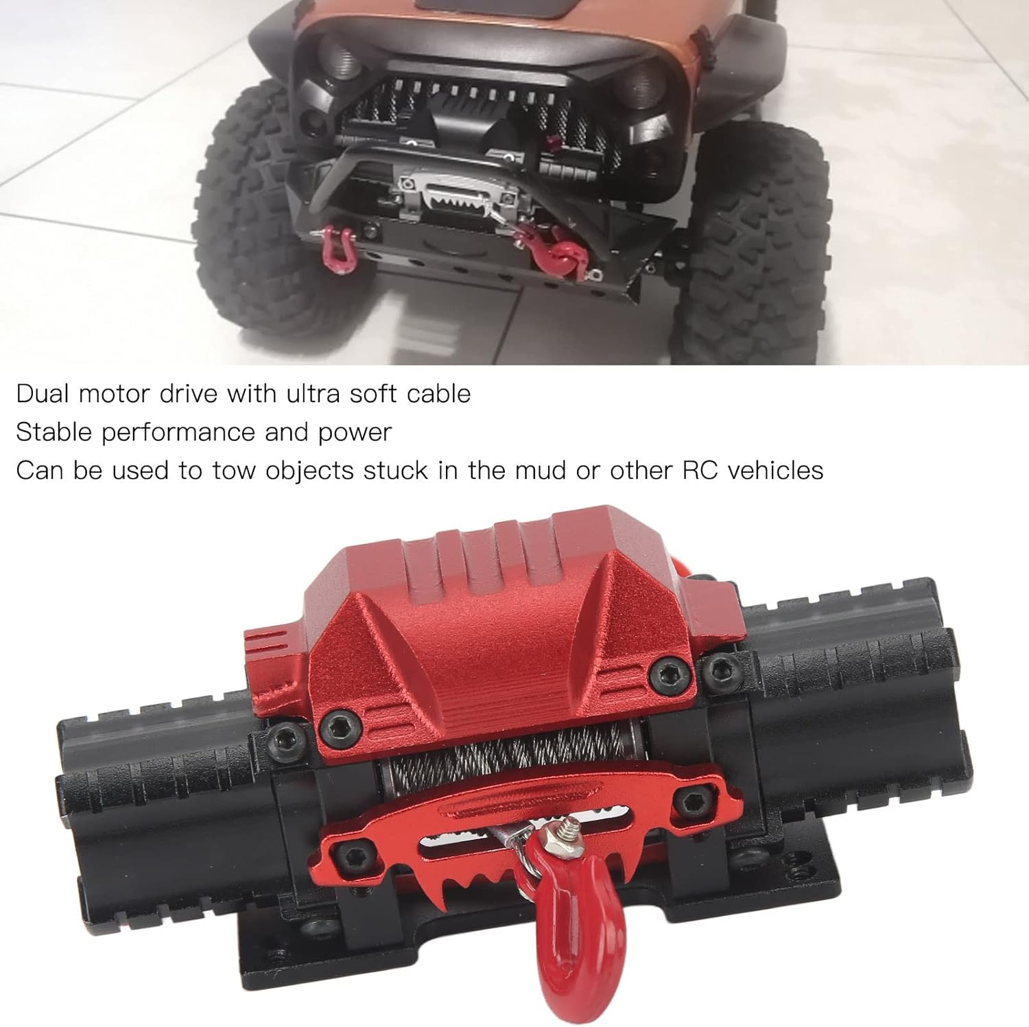 MATERIALE IN LEGA DI ALLUMINIO: resistente all'usura, durevole ed ecologico per migliorare le prestazioni delle auto RC. CAVO DI AZIONAMENTO A DOPPIO MOTORE: con prestazioni e prestazioni stabili, facile da installare, è un ottimo accessorio per quello rotto o vecchio. ADATTO PER: Verricello RC Adatto per Traxxas, per Hsp, per , per Axial scx10 D90, per installazioni di marca Hpi. UTILIZZO PRATICO ALTO: il verricello a doppio motore per auto RC può essere utilizzato per trainare oggetti bloccati nel fango o altri veicoli RC. GARANZIA DI SERVIZIO: Se non sei soddisfatto del verricello per auto RC che hai ricevuto da noi, puoi contattarci via e-mail in qualsiasi momento. Risponderemo e risolveremo il tuo problema in tempo e ci impegneremo a fornire un servizio migliore.