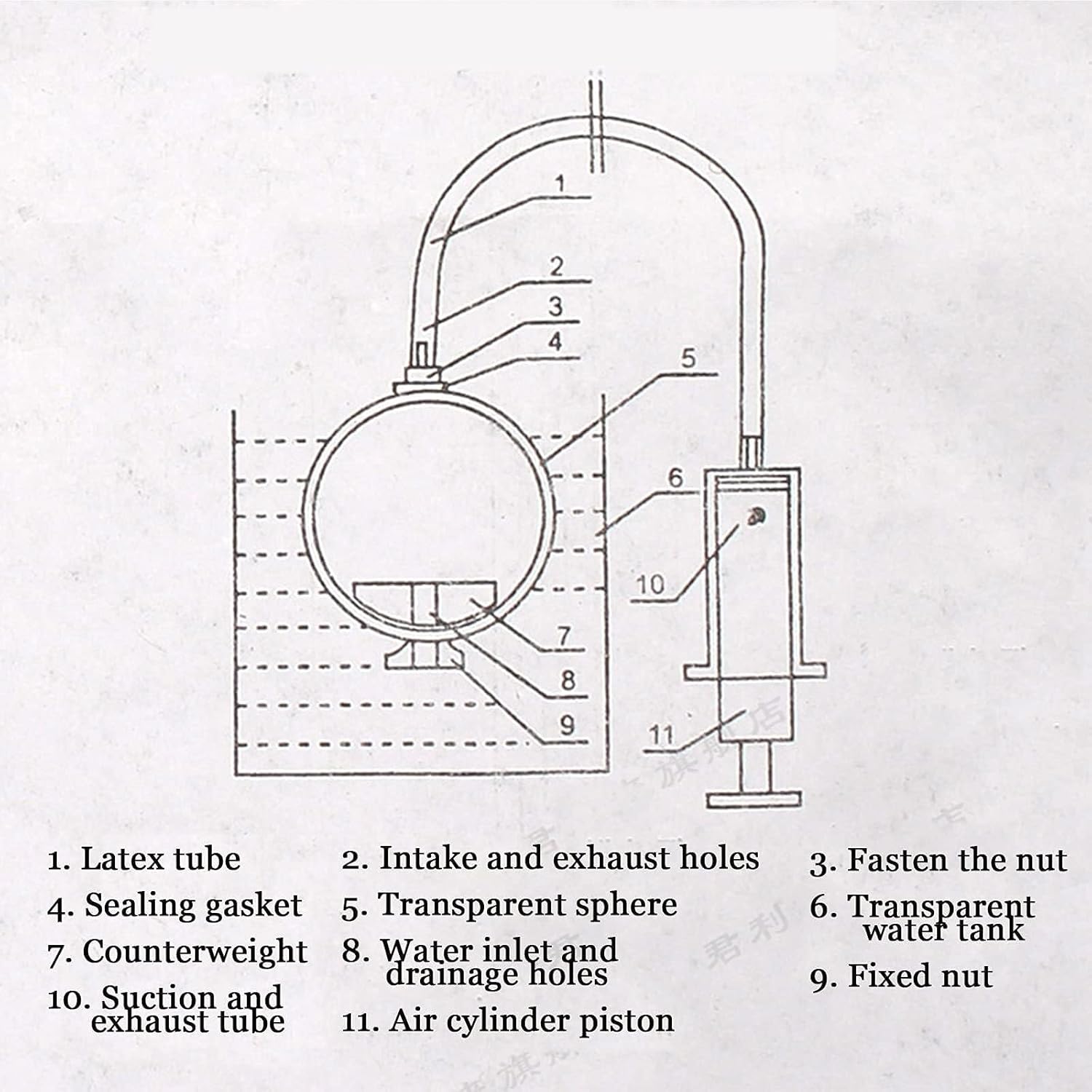 Utilizzo: questo dimostratore può mostrare facilmente gli alti e bassi dei sottomarini e aiutare gli studenti a comprendere a fondo l'applicazione pratica della legge di Archimede. Questo strumento utilizza una sfera cava trasparente come camera d'aria del sottomarino, che può dimostrare intuitivamente il drenaggio e lo scarico del sottomarino e può consentire agli studenti di cogliere la galleggiabilità (il peso dell'oggetto che scarica il liquido). Quando il peso è maggiore dell'oggetto, l'oggetto galleggia; quando la galleggiabilità è inferiore al peso dell'oggetto, l'oggetto affonda. Struttura: il dimostratore lavello e galleggiante sottomarino è costituito da una camera d'aria sferica trasparente, con fori di aspirazione e scarico nella parte superiore e fori di ingresso e drenaggio dell'acqua nella parte inferiore. Gli accessori sono in plastica trasparente ed aspirazione e scarico. Utilizzato per simulare l'affondamento e il galleggiamento del sottomarino negli esperimenti di fisica delle scuole medie e comprenderne il principio