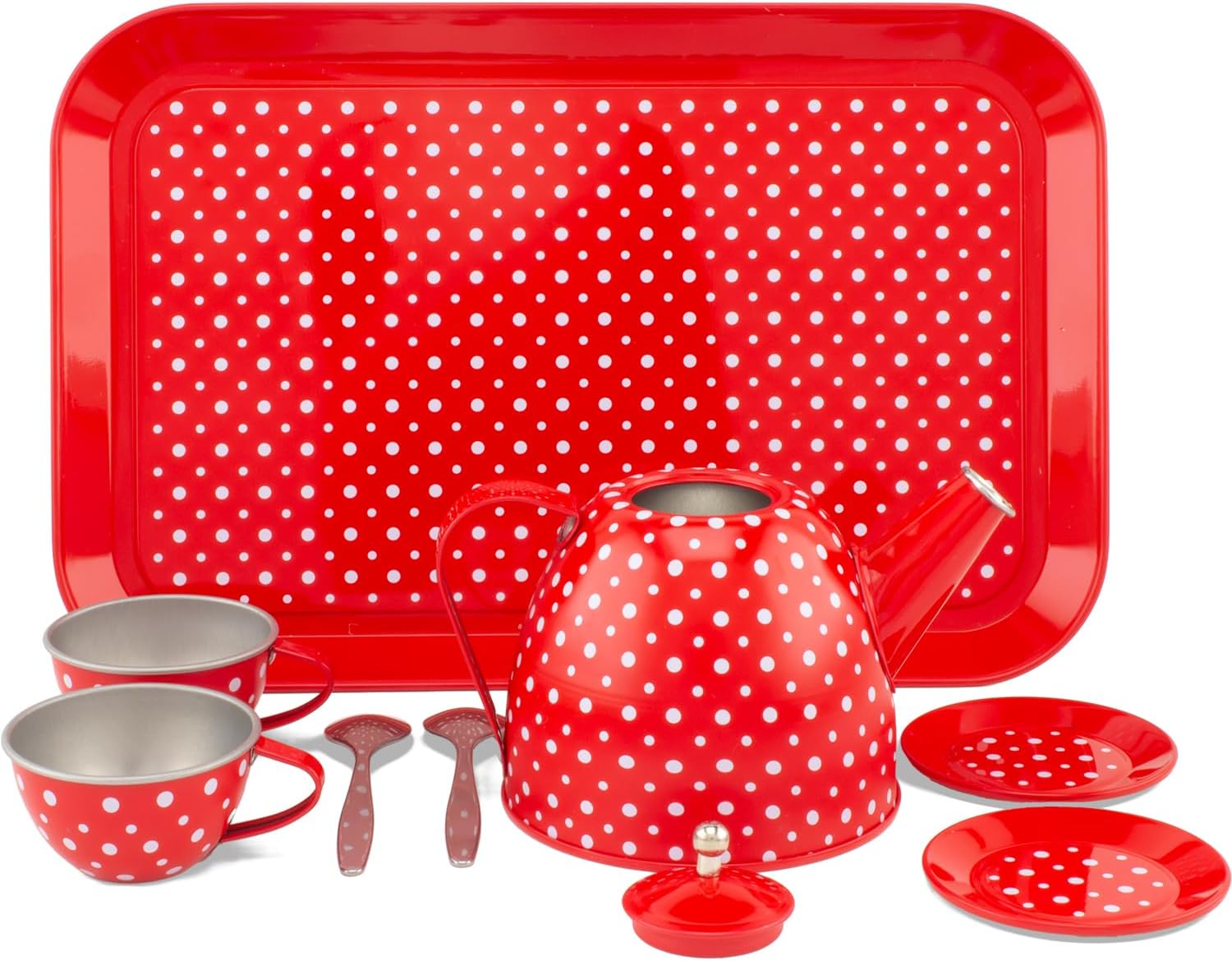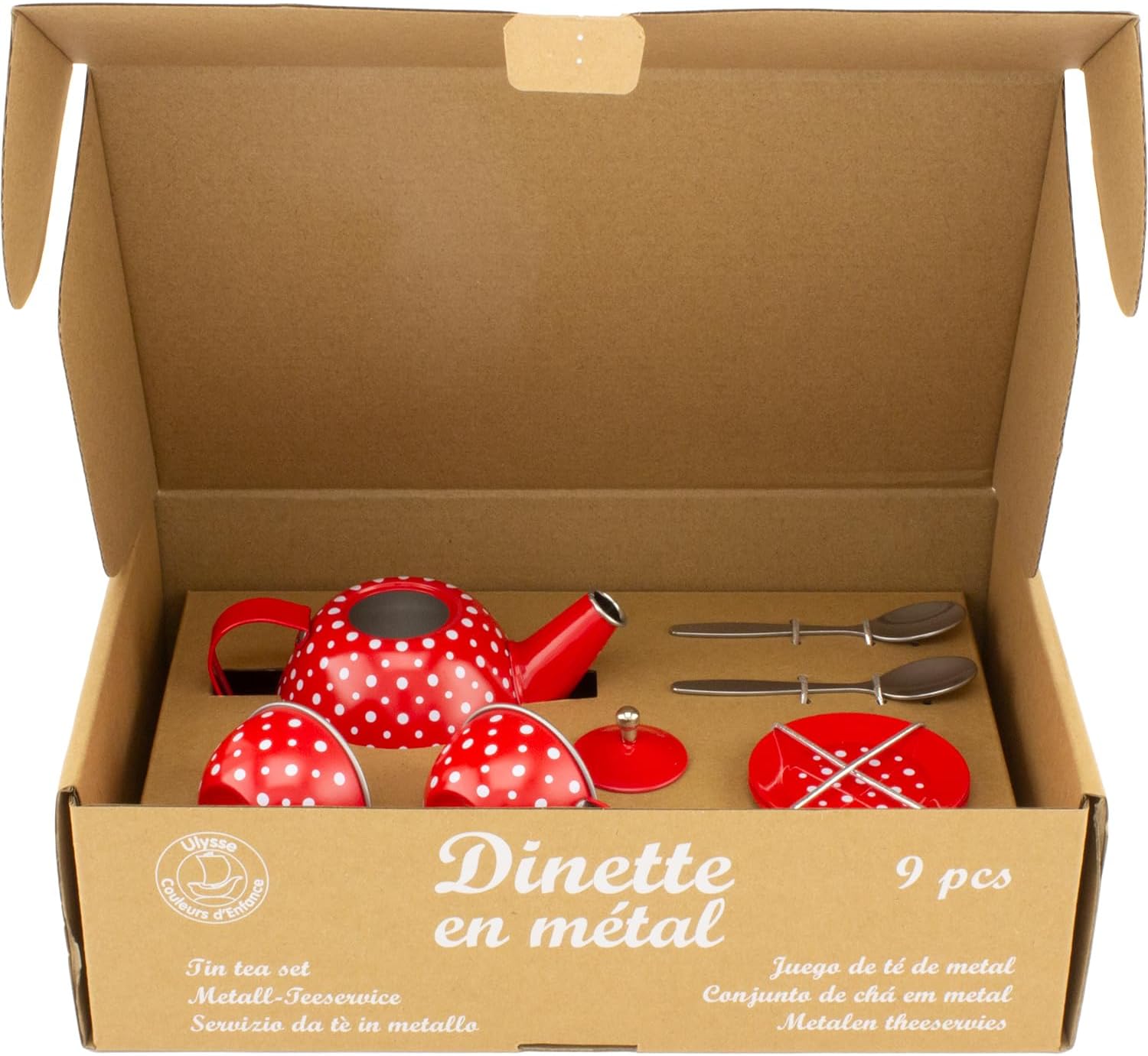 Per giocare come i grandi, i bambini hanno diritto a una dinette di metallo, adatta al contatto alimentare. Quindi possono giocare a fingere di usare il tè, ma anche gustare bevande reali nelle loro piccole tazze rosse. Giocattolo adatto per bambini dai 3 anni in su. La dinette comprende un set da tè rosso a pois bianchi, tra cui una teiera e il coperchio, 2 tazze e il sottotazza, 2 cucchiaini e un vassoio. Tutti i bambini amano riprodurre i gesti e le abitudini dei genitori, anche quando si tratta di cucinare o prendere il tè. Con questo giocattolo avranno un servizio più vero della natura per giocare a ricevere ospiti e servire bevande e persino preparare il proprio tè da gustare. Imballaggio ecologico in cartone kraft, senza pellicola di plastica Ideale per bambini dai 3 anni in su