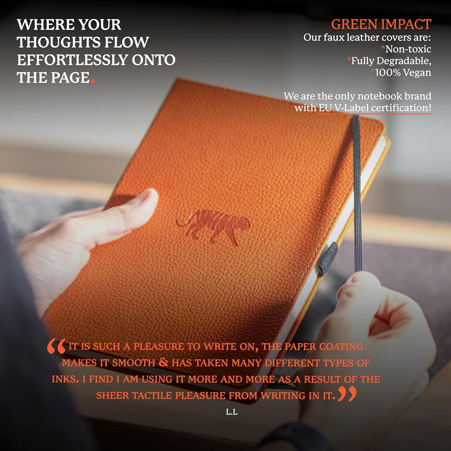 TACCUINO A5 CON MOLTE CARATTERISTICHE: I taccuini Dingbats trasudano qualità: questo taccuino in pelle con copertina rigida è realizzato in pelle PU vegetale, con pagine microperforate color crema da 100 g/m², una chiusura elastica e un portapenne. È UNA CARTA DESCRIZIONE DELLA MIGLIORE QUALITÀ: Questo quaderno A5 (medio, 16 x 21,5 cm) dal design piatto è tanto estetico quanto pratico. Il nostro taccuino in formato A5 ha 192 pagine (96 fogli), carta color crema della migliore qualità al mondo, 100 g/m². UN DIARIO MULTIFACCE: usa questo elegante taccuino come spazio per organizzare le tue giornate e i tuoi pensieri. Un delizioso taccuino che può servire sia come diario che come lista di cose da fare, per tenere traccia delle tue giornate e della tua mente e L'UNICO TACCUINO CERTIFICATO VEGAN: Realizzato con materiali riciclabili e carta certificata FSC, questo delizioso taccuino è certificato 100% vegano! Indossiamo questo distintivo con onore e speriamo che ti unirai a noi nella nostra promessa. UN MARCHIO CON UNA STORIA: questo taccuino con copertina rigida è stato realizzato a mano con amore, dalla più antica azienda cartaria del Libano (dal 1800). Crediamo con passione che i materiali tradizionali abbiano ancora il loro posto nel m