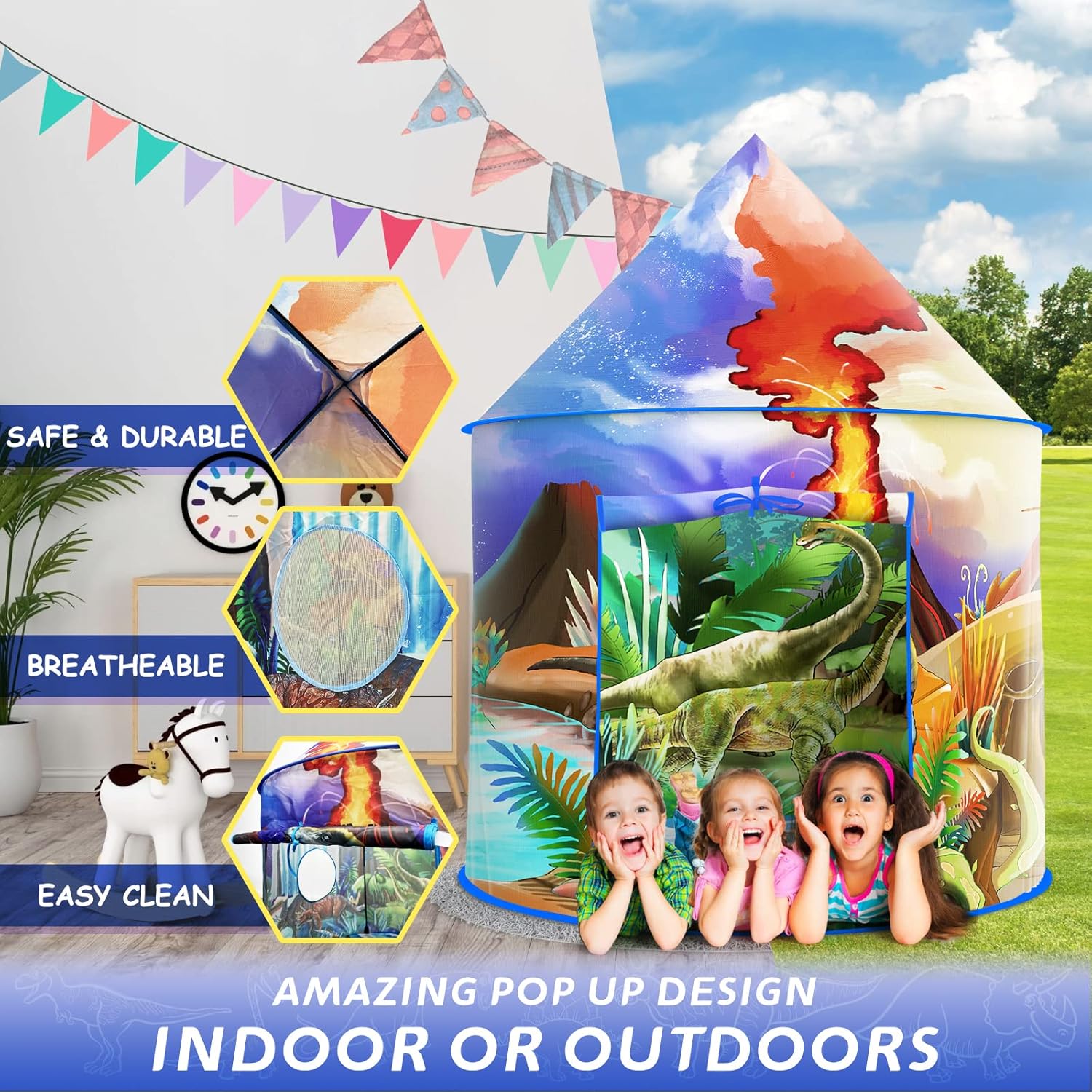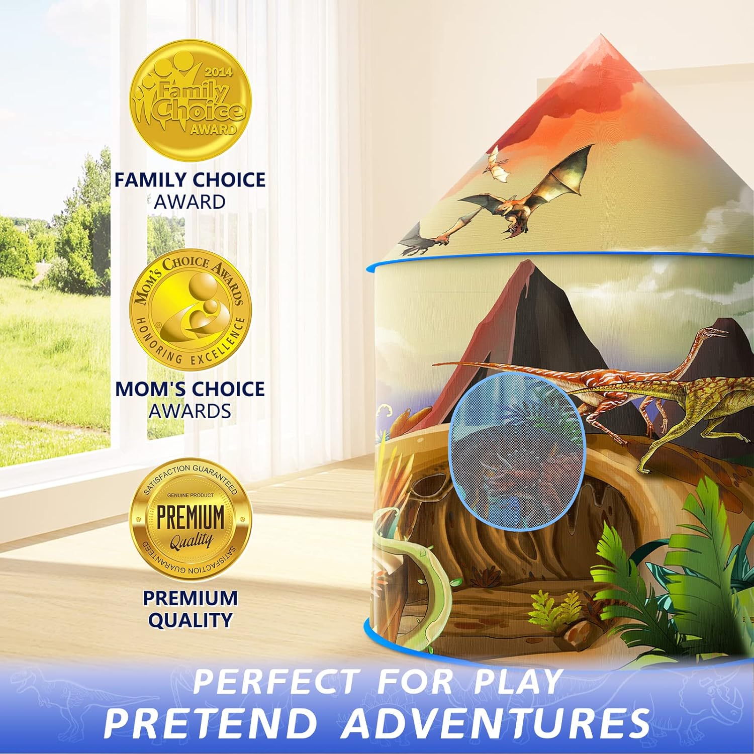 🦖 SPERIMENTA IL MONDO GIURASSICO: questa colorata tenda da gioco per bambini farà divertire i tuoi bambini per ore! Le nostre scene coinvolgenti e realistiche con la torcia porteranno i tuoi bambini in un'avventura epica ed emozionante con i dinosauri. Stimola la curiosità e l'immaginazione dei bambini attraverso giochi interattivi. 🦕 AMPIO SPAZIO PER TENDA ESTERNA E INTERNA: Misurando 53,2" (A) x 40,6" (P), questa tenda dei dinosauri è molto più grande di altre tende da gioco e può ospitare fino a 3 bambini. Una tenda da gioco per ragazzi e ragazze accompagna i tuoi bambini mentre crescono, da uno spazio divertente con infiniti giochi cucù per i più piccoli a un'area privata per ragazzi e ragazze dai 3 ai 12 anni dove i bambini possono muoversi liberamente qualunque cosa li ispiri: appuntamenti di gioco, lettura di libri, giochi di ruolo, anche per riporre giocattoli e altro ancora 🦖 TENDA POP-UP FACILE DA MONTARE PER BAMBINI: questa tenda pop-up è facile da montare con pali pieghevoli (non sono necessari attrezzi), quindi tuo figlio potrà fuggire nel suo mondo di dinosauri in pochi minuti. Si ripiega facilmente e si ripone comodamente in una borsa per il trasporto con cerniera. Perfetta per i bambini che amano i dinosauri, all'interno o all'esterno, con un'ampia porta retrattile e finestre in rete per la ventilazione e il monitoraggio dei bambini da parte dei genitori. 🦕 TENDA DINO SICURA E DUREVOLE: a differenza di altre tende per bambini, utilizziamo pali in fibra di vetro robusti e sicuri che non si piegano né si rompono. Modellata in avanzato tessuto Oxford 210D facile da pulire e con tetto rinforzato, è abbastanza resistente da sopportare anni di gioco fantasioso e standard di sicurezza dei giocattoli per offrire a tuo figlio l'esperienza più sicura e piacevole 🎁 OGNI BAMBINO MERITA IL MIGLIOR AMORE: questa tenda per bambini presenta 4 diverse scene a tema dinosauri che possono fornire diverse esperienze sensoriali. Regalatelo come regalo di Natale a ragazzi e ragazze di 1, 2, 3, 4, 5, 6, 7, 8, 9, 10, 11 o 12 anni. Perfetto per feste di compleanno, picnic, barbecue in giardino, parchi, campi da gioco, asilo nido, scuola, carnevali, pigiama party, asilo nido. Per darti tranquillità, possiamo offrire una sostituzione senza problemi su tua richiesta
