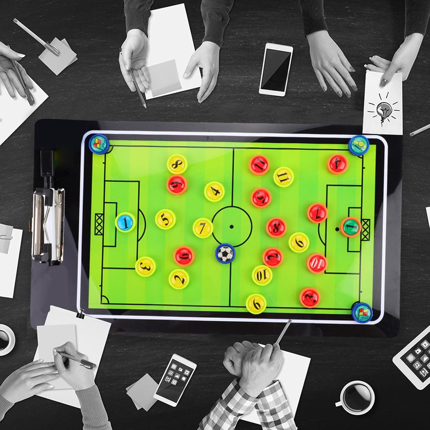[Strategize for Success] Questo consiglio di tattica magnetica calcistica è essenziale per creare strategie vincenti sul campo. Che tu sia un allenatore professionista o gestisci una lezione di scolastica, questa scheda ti aiuta a comunicare efficacemente le tattiche di gioco. È per dimostrare visivamente giochi e formazioni complesse, colmare il divario tra pianificazione ed esecuzione. [Surface facilmente cancellabile] La scheda presenta una superficie cancellabile intuitiva, consentendo agli allenatori di scrivere e regolare liberamente le strategie secondo necessità. Con la gomma inclusa, le modifiche possono essere apportate perfettamente, mantenendo la tua concentrazione sulle tattiche senza interruzioni. Ciò garantisce che il tuo team rimanga agile e reattivo a situazioni dinamiche di gioco. [Componenti magnetici sicuri] dotati di forti pezzi magnetici, questa scheda tattica assicura che tutti i segnalini del giocatore e del campo rimangono saldamente in atto. La robusta presa dei magneti semplifica la regolazione delle formazioni senza preoccuparsi dei pezzi che cadono durante le discussioni. È costruito per gestire i rigori degli scenari di coaching interni ed esterni. [Versatile per tutte le impostazioni] Ideale sia per le squadre di calcio professionistiche che per gli ambienti educativi, questa commissione di calcio offre versatilità negli ambienti di allenamento e insegnamento. Adatto a tutte le fasce d'età e livelli di abilità, migliora l'esperienza di apprendimento fornendo un modo chiaro e interattivo per spiegare le tattiche calcistiche. [Design portatile e leggero] Progettato per comodità, questa scheda è la soluzione portatile perfetta per gli allenatori in movimento. Le sue dimensioni compatte e il design leggero rendono facile il trasporto tra sessioni di prove e partite, assicurandoti di avere gli strumenti giusti per condurre la tua squadra al successo ovunque ti porti il gioco.