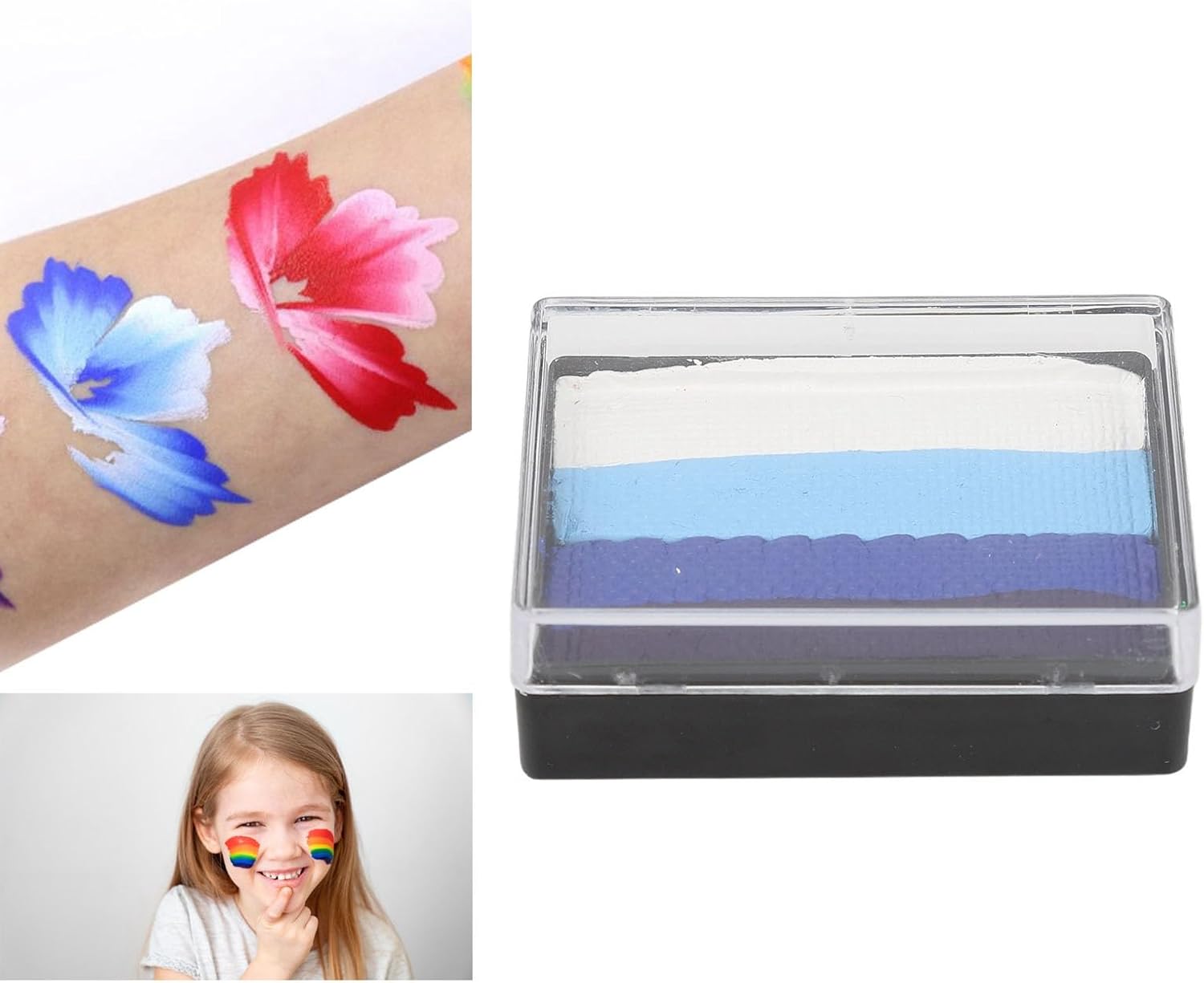 ASCIUGA RAPIDAMENTE: Si asciuga circa 1 minuto dopo l'applicazione. Dopo l'asciugatura, non cadrà facilmente quando viene toccato. Il colore è audace e vibrante, creando un potente effetto tridimensionale. AMPIO UTILIZZO: Split Cake è uno strumento versatile per dipingere il corpo e il viso che può essere utilizzato per varie scene come Halloween, Natale, cosplay, feste di compleanno, palcoscenici artistici, passerelle di modelli, regali di pittura fai-da-te, lezioni di pittura, trucco per ventagli, ecc. SICURO E DELICATO: la tavolozza sicura per viso e corpo soddisfa gli standard cosmetici, garantendo che sia inodore, non irritante e adatta sia ai bambini che agli adulti. Non ha effetti dannosi sulla pelle. TORTA A DIVISI IN 4 COLORI: il contenuto netto di 1,1 once la rende adatta a soddisfare varie esigenze fai-da-te. Facile da pulire, si pulisce con acqua o panni senza lasciare aloni, semplice e pratico. FACILE DA USARE: pittura per il viso a base d'acqua. Usa un pennello imbevuto di acqua per mescolare la vernice a una concentrazione adeguata, quindi puoi dipingere, operazione semplice.