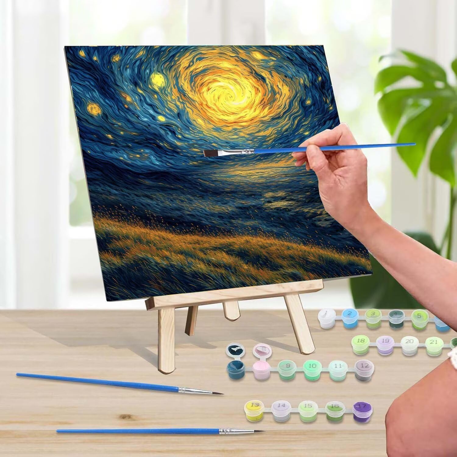 Dipingere con i Numer, Dipingere con i Numeri per Adulti Principianti, DIY Hobby Creativi Adulti Paint by Numbers Kit Completo Decora la Casa Regalo Albero di stelle 20x20cm Cornice in Legno U-9902
