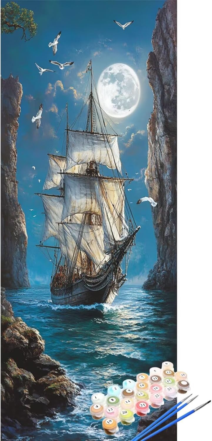 Dipingere con i Numeri Adult Grandi Dimensioni 60x150cm Luna Dipingere con i Numeri Barca a vela Hobby Creativi Adulti Craftoria,Fai da Te Tela Paint by Numbers for Débutant,Decor Regalo, XYY-1946