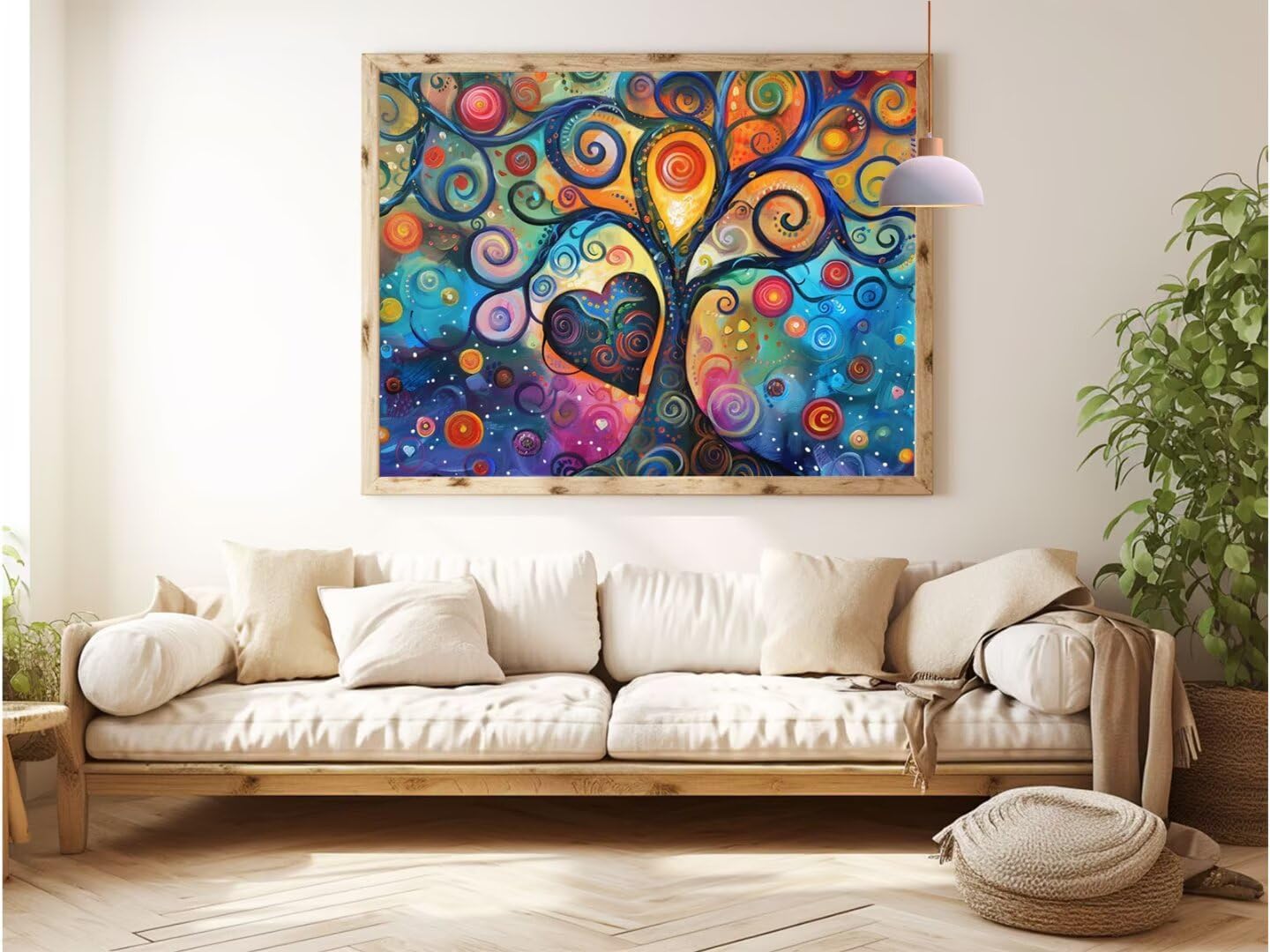 Dipingere con i Numeri Adulti Albero Pattern Disegno, Amore Dipingere con i Numeri Adulti con Cornice, Kit per Paint by Numbers con Pennelli e Pigmento Acrilico per Home Decor, Regalo Donna, 45X60CM