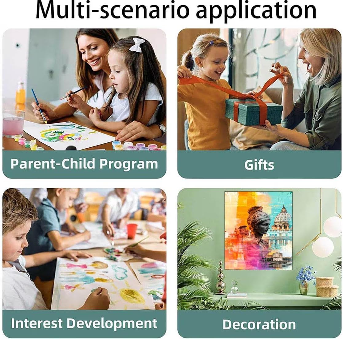 【KIT PITTURA ADULTI】: Ogni KIT PITTURA ADULTI con numeri include una tela pre-strutturata e numerata e due ganci per appendere, un set di pittura acrilica, tre tipi di pennelli (senza cornice). Dai pieno gioco alla tua creatività. Se la vernice non è sufficiente, non esitare a contattarci e te li rispediremo 【DIPINGERE CON I NUMERI ADULTI】: Dipingere con i numeri offre molto più di un semplice sbocco creativo. Aiuta a ridurre lo stress concentrando la mente sull'atto rilassante della pittura, migliorando la concentrazione e la consapevolezza. Completare un pezzo aumenta la fiducia e fornisce un senso di realizzazione. migliora le capacità motorie e la coordinazione occhio-mano 【DIPINGERE CON I NUMERI BAMBINI】: Dipingere con i numeri è per i bambini. Nutre la creatività e l'espressione artistica migliorando la concentrazione e la pazienza, aiuta a sviluppare le capacità motorie e la coordinazione occhio-mano, essenziali per la loro crescita complessiva, Completare un dipinto aumenta la loro fiducia e il senso di realizzazione, Stare lontano dai prodotti elettronici 【APPLICAZIONE DELLA Dipingere Con I Numeri】: Non vedo l'ora di vedere le espressioni dei tuoi amici, familiari e persone care quando riceveranno un regalo premuroso che hai disegnato con cura. Può anche essere usato come opera d'arte per abbellire la tua camera da letto, soggiorno, ufficio 【POST-VENDITA】: Credo che il nostro servizio sincero ti offrirà sicuramente un'esperienza diversa e spero che tu possa diventare nostro cliente. Se riscontri un problema, non preoccuparti, contattaci, risponderemo rapidamente e risolveremo il tuo problema