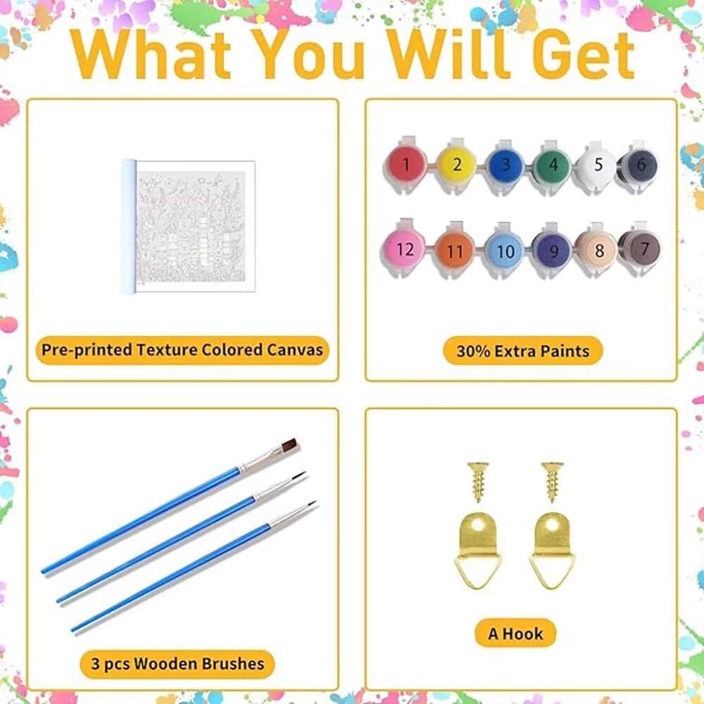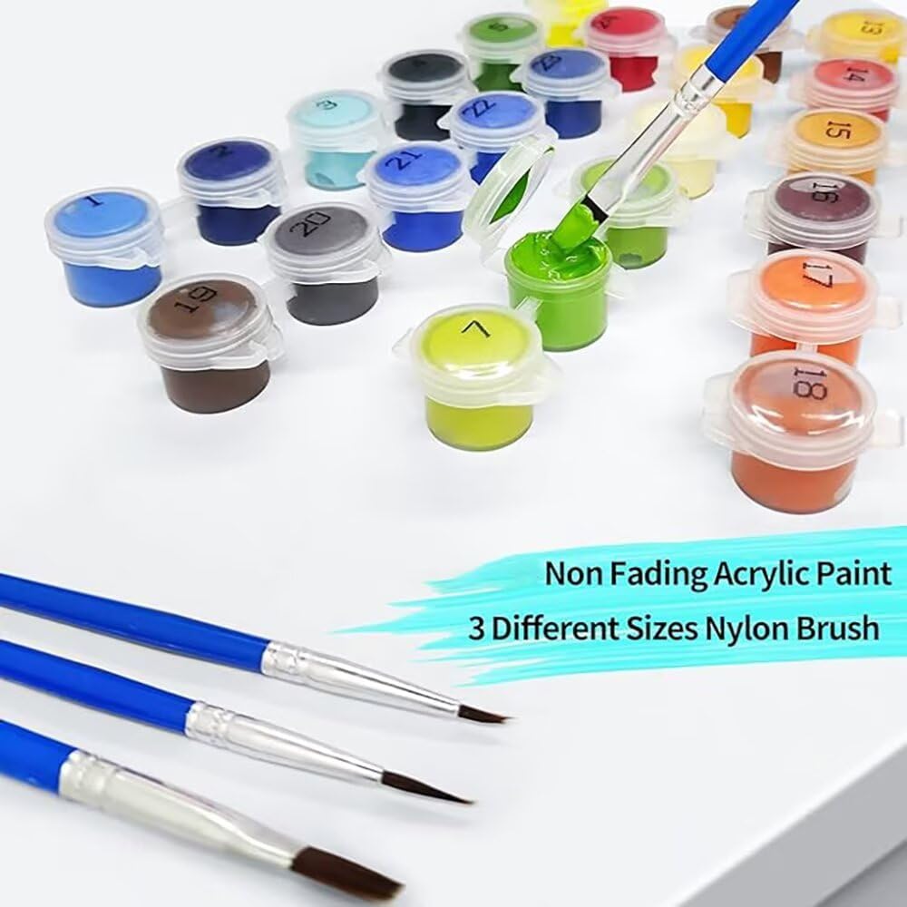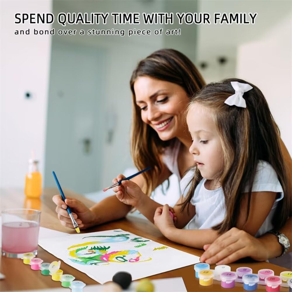 SERVIZIO POST-VENDITA ACCURATO: Per qualsiasi domanda, contattaci tramite Amazon. Promettiamo una risposta e una risoluzione rapide per garantire la tua soddisfazione SVILUPPA L'INTELLIGENZA: Dipingere con i numeri può migliorare l'intelligenza dei bambini, promuovere l'amore per la pittura e consentire ad adulti e bambini di condividere, interagire e rilassarsi SENSO DI REALIZZAZIONE: Una volta completato il tuo lavoro, proverai un'ondata di fiducia e gioia! L'arte non solo rilassa la mente, ma porta anche una soddisfazione infinita SUGGERIMENTO: dopo aver ricevuto la tela, si consiglia di stirarla con un ferro da stiro a bassa temperatura prima di dipingerla, per risultati ottimali