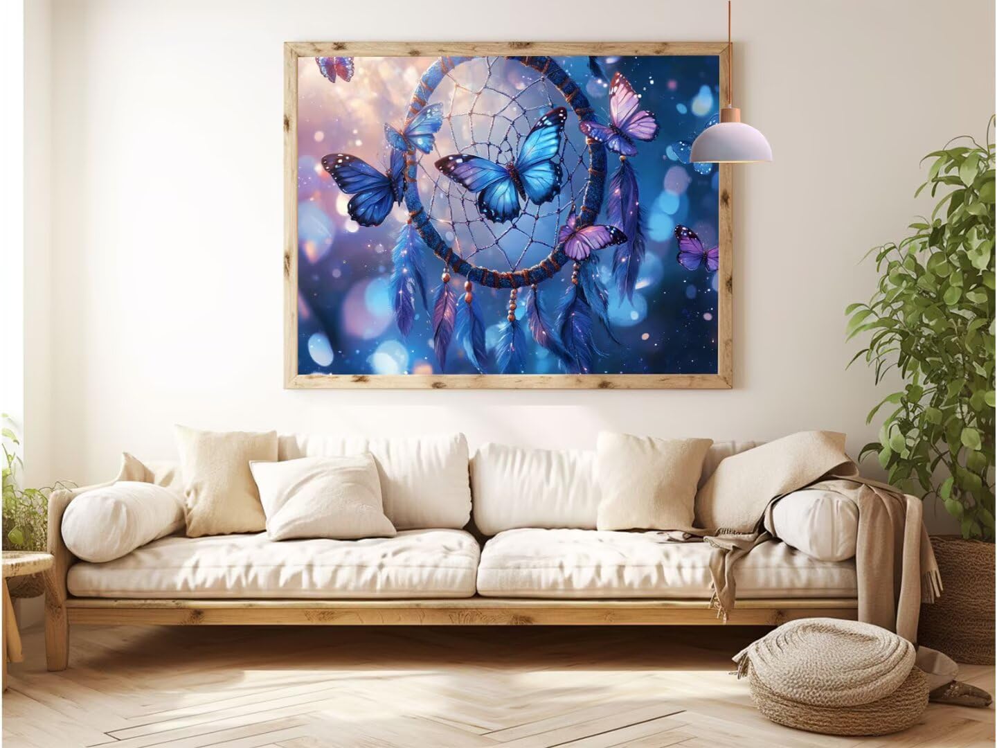 Dipingere con i Numeri Adulti Farfalla Pattern Disegno, Cacciatore Di Sogni Dipingere con i Numeri Adulti con Cornice, Kit per Paint by Numbers con Pennelli e Pigmento Acrilico, Home Decor 90X120CM