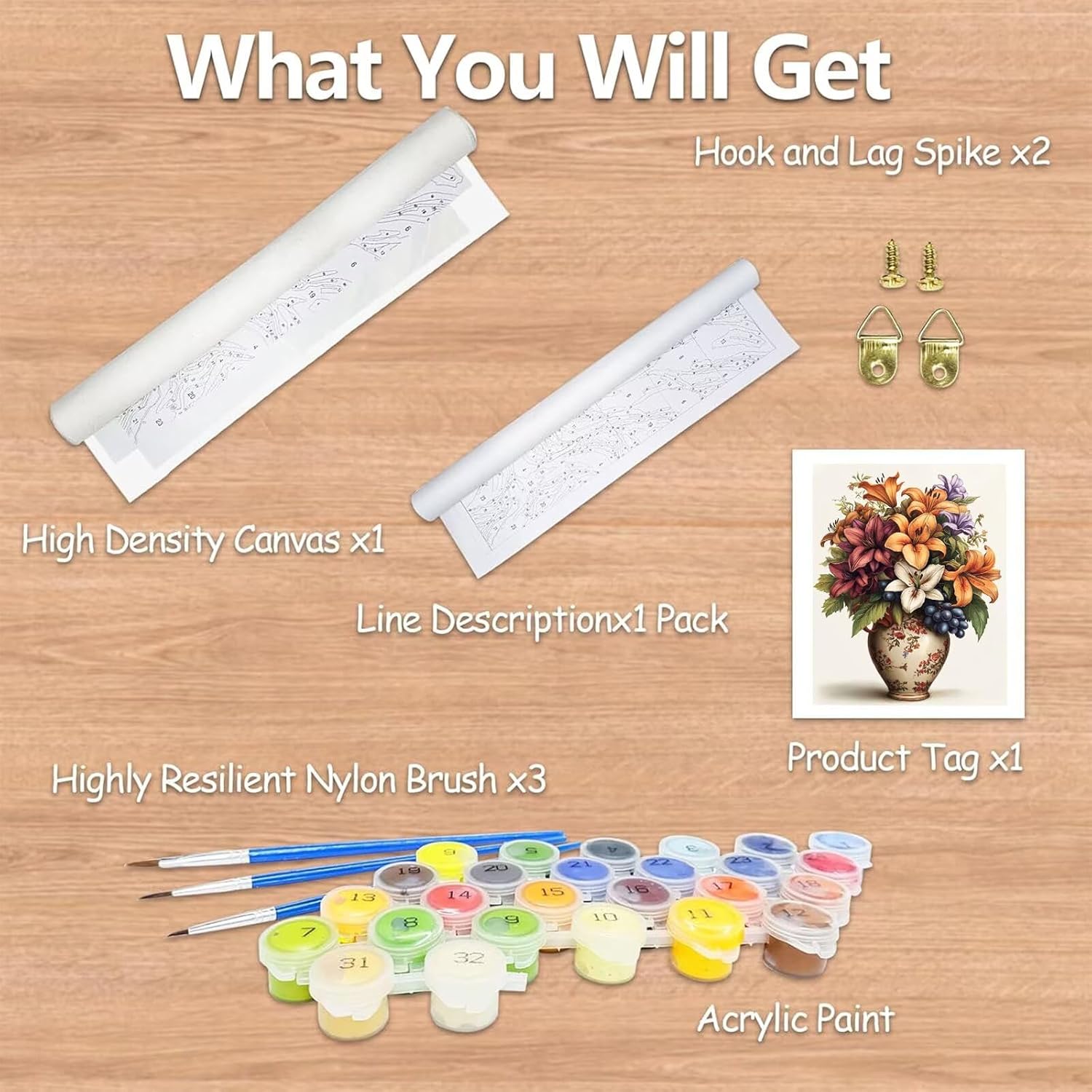 【DIPINGERE CON I NUMERI】:Include una tela (con frame), 3 pennelli da pittura, 1 set di colori di pigmento acrilico e un campione di immagine. Siamo pronti per tutto, aspettando solo che tu dipingi la pittura su tela. 【MATERIALI DI ALTA QUALITÀ】:Realizzato con vernici acriliche di alta qualità e resistenti alla sbiadida e tela spessa e strutturata, questo kit garantisce colori vibranti e opere d'arte di lunga durata. Materiali Superiore lo rendono sicuro per bambini e adulti. La tela in cotone puro, ha buon assorbimento d'acqua e capacità di respirazione, facile da conservare per un lungo periodo di tempo. 【FACILE DA DIPINGERE】:Design senza stress per tutte le età: grandi zone numerate, vernici ad asciugatura rapida e una tela leggera che rimane piatta durante il lavoro. Include istruzioni dettagliate passo dopo passo con aiuti visivi per un progresso semplice. 【REGALI PERFETTI】:Un regalo pensato per compleanni, vacanze o vari giorni di commemorazione. Viene elegantemente scatolato con un design pronto per regali. Ideale per gli amanti dell'arte, gli appassionati di fai da te o chiunque cerchi relax. I pezzi finiti possono essere incorniciati per splendidi arredi domestici! 【SERVIZIO POST-VENDITA】:Godetevi un supporto senza preoccupazioni con il nostro team di assistenza clienti dedicato. Se incontri problemi con il tuo kit, sia che mancano pezzi o preoccupazioni di qualità, contattaci, risolveremo attivamente per te. La tua soddisfazione è la nostra priorità!