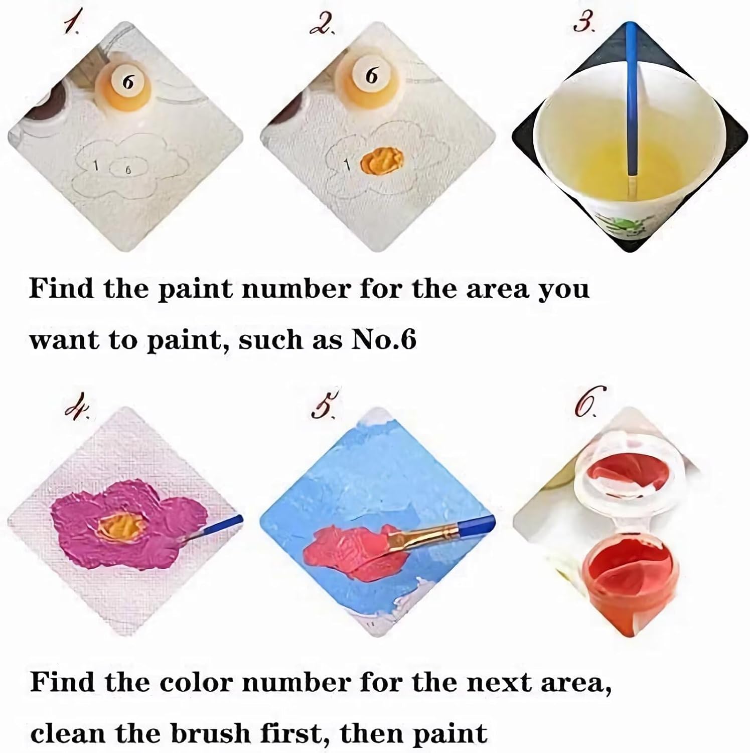 DIY Dipingere con i Numeri: Dipingere con i Numeri Adulti è molto adatto per i principianti. Non richiede una capacità di pittura, e puoi iniziare a dipingere la tua opera d'arte dopo aver aperto la confezione. Molto semplice e interessante, dipingere con i numeri è un grande hobby (consigliamo la supervisione per i bambini più piccoli in quanto potrebbero trovare difficile senza assistenza). Consigli: 1.Trovare il numero di colore che corrisponde all'area di numerazione e colorare l'area numerata. Applicare la vernice direttamente e non diluita. Se si riempie il colore sbagliato, basta aspettare che il colore si asciughi e utilizzare il colore giusto per coprirlo. 2.Si prega di pulire il pennello in un primo momento e lasciarlo asciugare se si desidera un colore diverso. 3.Pigments può asciugare facilmente, quindi si prega di aprire un colore alla volta. Se è un po 'asciutto, è possibile far cadere 1 o 2 gocce d'acqua in esso e mescolare e questo non influenzerà l'uso normale. 4.I colori che offriamo sono sufficienti per l'uso normale, si prega di non sprecarli in caso di mancanza di colore. Dipingere con i numeri è un'attività rilassante e rilassante. Nel processo, "Fallo da solo", la capacità pratica del bambino può essere migliorata e aiuta a promuovere la loro immaginazione e creatività. Molto adatto per i vostri bambini. Sorprendi i tuoi cari con un regalo unico. Dovrebbe essere dipinto da te stesso!