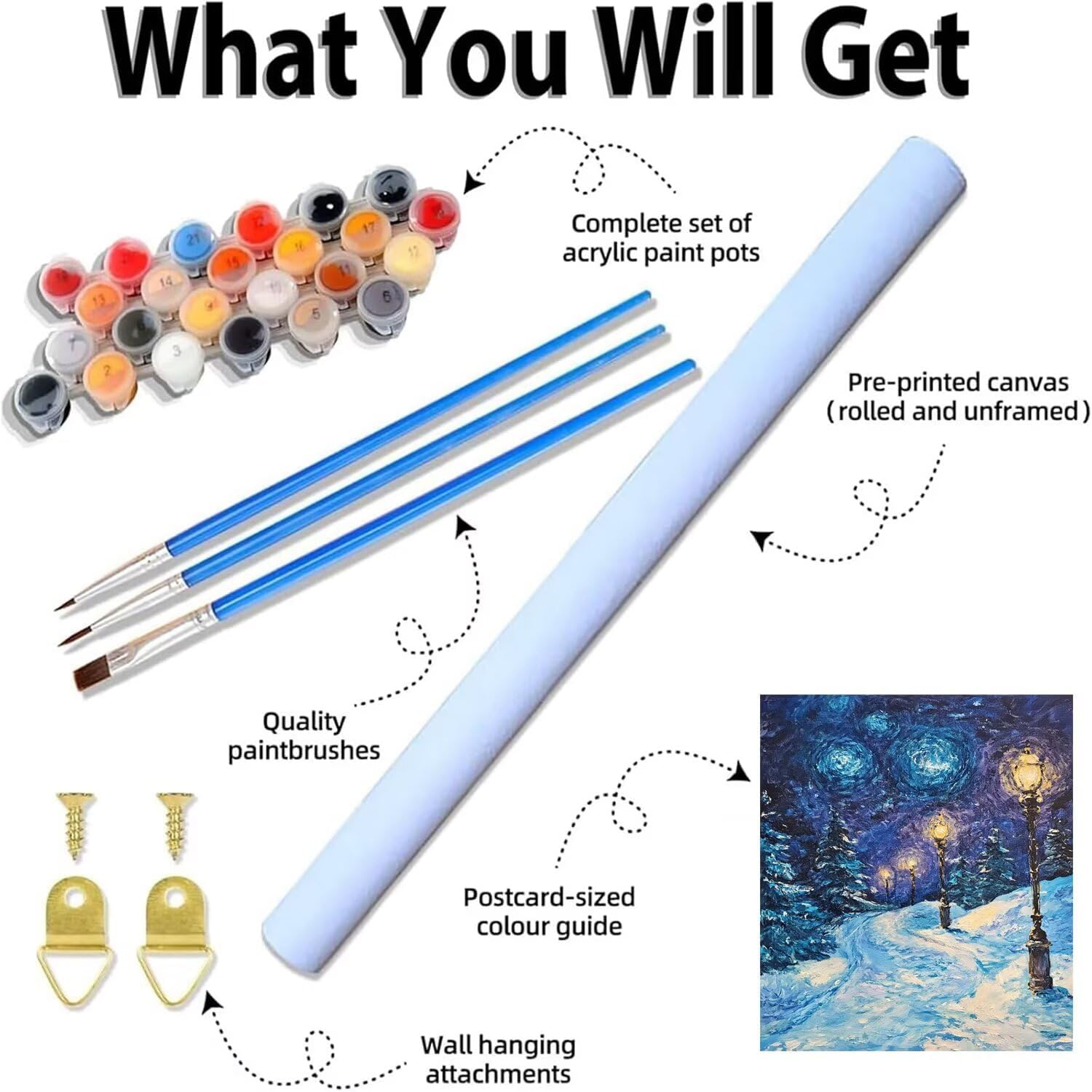 【KIT DIPINGI CON I NUMERI】: Tela colorata prestampata HD x 1, foglio di riferimento x 1, immagine in miniatura x 1, pennelli di diverse dimensioni x 3, vernice acrilica extra al 30%, gancio x 1 set, (senza cornice) 【TELA COLORATA HD】: Dipingere con i numeri adulti utilizza una tela colorata ad alta risoluzione, che è facile da dipingere, l'area del numero è più facile da distinguere, non è facile stancare gli occhi quando si dipinge per lungo tempo. A differenza di altre tele piegate, spediamo in imballaggi arrotolati in modo che la tela non si sgualcisca, di' addio alle pieghe e dai il benvenuto a un'esperienza di pittura senza problemi 【MATERIALI DI ALTA QUALITÀ】: Dipingere con i numeri per adulti utilizza vernice acrilica di alta qualità e sicura, colori brillanti, buona copertura, è facile da colorare e previene lo sbiadimento. 3 pezzi di pennelli professionali di diverse dimensioni, una presa più comoda, una maggiore durata, punte in setole di nylon di alta qualità ideali per la pittura acrilica 【DIY PAINT BY NUMBER】: Dipingere con i numeri bambini è un'attività semplice e divertente, basta seguire i numeri sulla tela con la vernice corrispondente, divertiti a dipingere e crea capolavori sorprendenti 【POST-VENDITA DISTINTO】: Ogni set di pittura con i numeri viene fornito con vernice e strumenti di pittura sufficienti per completare il dipinto. Se durante il processo di produzione mancano parti o domande, ti preghiamo di contattarci, risponderemo al tuo messaggio e risolveremo il problema entro 24 ore