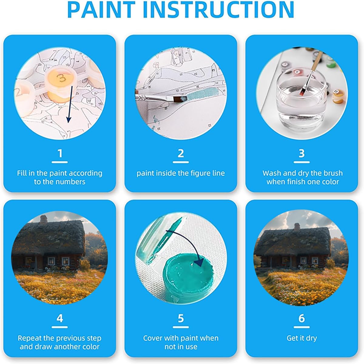 Creare Dipingere con i Numeri ti Porterà nel Mondo dell'arte Della Pittura Dipingere con i numeri unisce la bellezza dell'arte tradizionale alla praticità della tecnologia moderna. Sono adatti ai creatori professionisti per esplorare nuovi stili e agli appassionati per provare il divertimento della pittura. Nell'era digitale, promuove l'innovazione e lo sviluppo continui della creazione artistica con il suo fascino unico e amplia il modo di diffusione dell'arte Passaggi per creare paint by numbers: 1. Controlla il kit, pulisci il pennello e organizza la vernice 2. Usa del nastro adesivo per fissare i quattro angoli della tela su un tavolo piano o usa un cavalletto 3. Applica la vernice sulla tela con il simbolo corrispondente 4. Assicurati che la vernice copra completamente il numero e applica 2 strati se necessario (il primo strato deve essere completamente asciutto) 5. Dopo aver completato la creazione, la tela deve essere posizionata in un luogo ventilato per asciugare Suggerimenti per l'ordine di colorazione 1. Da scuro a chiaro: evita riparazioni ripetute quando i colori chiari sono coperti da colori scuri 2. Da piccole aree a grandi aree: completa prima i dettagli (come i numeri piccoli), quindi dipingi quelli grandi sfondo 3. Dal bordo al centro: evita di strofinare la vernice bagnata con le mani Precauzioni 1. Lava il pennello per tempo: lava accuratamente il pennello prima di cambiare colore per evitare di mescolare i colori 2. Ripara gli errori: se dipingi l'area sbagliata, puoi pulirla immediatamente con una salvietta umida; se è completamente asciutta, copri semplicemente il colore corretto 3. Mantieni pulito il quadro: evita di graffiare il quadro con le mani o le maniche