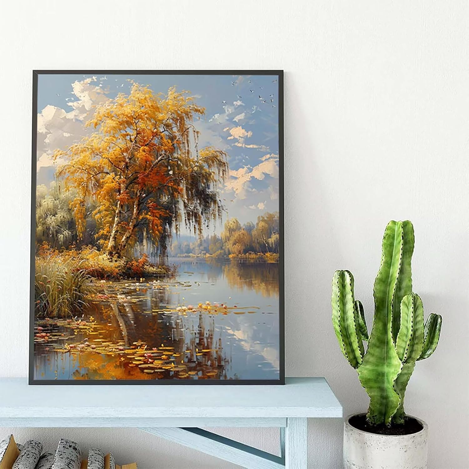 Dipingere con i Numeri Autunno Dipingere con i Numeri Adulti, Paint by Numbers Albero Paint by Numbers Adulti con 3 Pennelli e Vernice Acrilica per Decorazioni Casa, Regalo Donna 60x80 cm -zp2531K