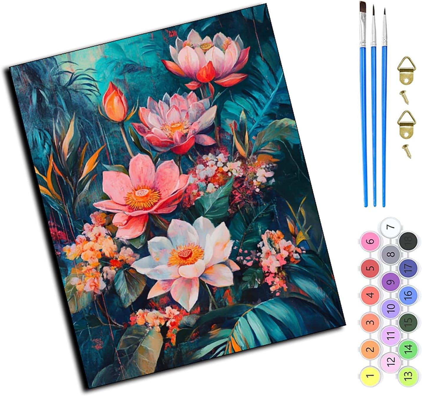 Colore sicuro: quando si dipinge dopo il set di numeri, viene utilizzato un colore acrilico sano e Facile da colorare, non sbiadisce facilmente, alta resa cromatica, rendendo il dipinto più realistico. La vernice ha un eccellente potere coprente. Pertanto, se commetti un errore durante la pittura, puoi semplicemente coprirli con il colore giusto. Tela professionale: la tela ad alta densità è molto resistente e facile da colorare, ha un buon assorbimento d'acqua e permeabilità all'aria e può essere conservata a lungo. I numeri di facile lettura ti aiuteranno a identificare il colore corretto. Ottimo regalo: sempre più persone scelgono di dipingere con i numeri per bambini come regalo e decorazione per la casa. Perché i lavori fatti in casa sono più significativi. La pittura ad olio astratta non solo può allenare le tue abilità pratiche, coltivare la pazienza e aumentare la fiducia in se stessi, ma puoi anche goderti il processo creativo con la tua famiglia e gli amici e migliorare il tuo rapporto. Decorazione squisita: se pensi che la decorazione della stanza sia semplice e ordinaria, la pittura con i numeri decorerà il tuo soggiorno o camera da letto, la cucina, l'ufficio, il ristorante, il bar, ecc. Cosa ottieni: Il dipinto moderno per adulti contiene tutti gli strumenti necessari per dipingere. 1 tela. Può essere utilizzato come regalo per la famiglia o gli amici per la festa del papà, la festa della mamma, il compleanno, il Natale e altre festività importanti, 40 x 50 cm (senza cornice), 3 pennelli di diverse dimensioni, 2 ganci, 2 viti abbinate, 1 set di colori di alta qualità e 1 manuale di istruzioni (lingua italiana non garantita).