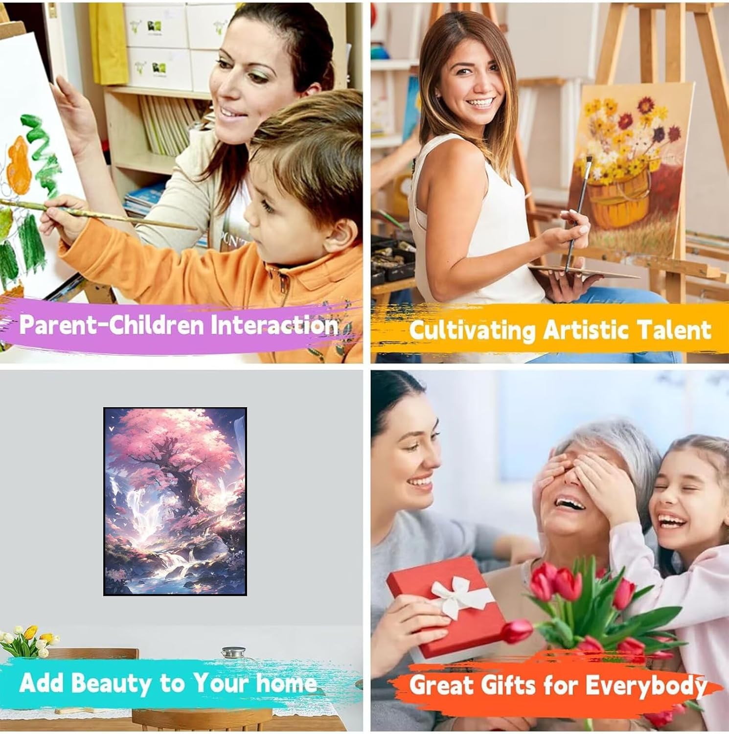 【DIPINGERE CON I NUMERI】:Include una tela (con frame), 3 pennelli da pittura, 1 set di colori di pigmento acrilico e un campione di immagine. Siamo pronti per tutto, aspettando solo che tu dipingi la pittura su tela. 【MATERIALI DI ALTA QUALITÀ】:Realizzato con vernici acriliche di alta qualità e resistenti alla sbiadida e tela spessa e strutturata, questo kit garantisce colori vibranti e opere d'arte di lunga durata. Materiali Superiore lo rendono sicuro per bambini e adulti. La tela in cotone puro, ha buon assorbimento d'acqua e capacità di respirazione, facile da conservare per un lungo periodo di tempo. 【FACILE DA DIPINGERE】:Design senza stress per tutte le età: grandi zone numerate, vernici ad asciugatura rapida e una tela leggera che rimane piatta durante il lavoro. Include istruzioni dettagliate passo dopo passo con aiuti visivi per un progresso semplice. 【REGALI PERFETTI】:Un regalo pensato per compleanni, vacanze o vari giorni di commemorazione. Viene elegantemente scatolato con un design pronto per regali. Ideale per gli amanti dell'arte, gli appassionati di fai da te o chiunque cerchi relax. I pezzi finiti possono essere incorniciati per splendidi arredi domestici! 【SERVIZIO POST-VENDITA】:Godetevi un supporto senza preoccupazioni con il nostro team di assistenza clienti dedicato. Se incontri problemi con il tuo kit, sia che mancano pezzi o preoccupazioni di qualità, contattaci, risolveremo attivamente per te. La tua soddisfazione è la nostra priorità!