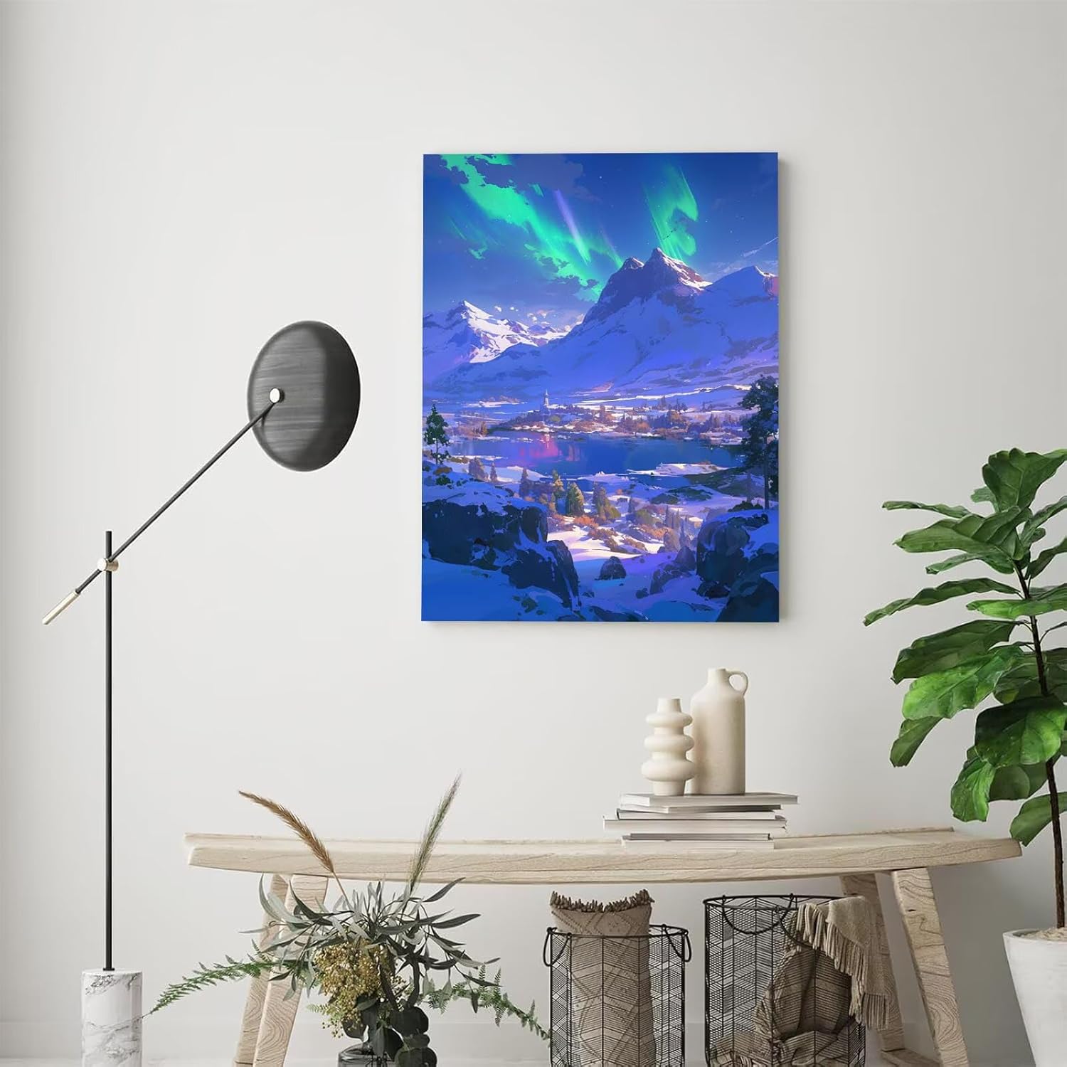 Dipingere Con i Numeri bambini Aurora, Dipingere Con i Numeri Adulti, 70x100cm, Fai Da Te creativo adulti Pigmento Acrilico Pittura, ideale Autunno Signora Regali, Con Cornice Disegno Inverno A-360
