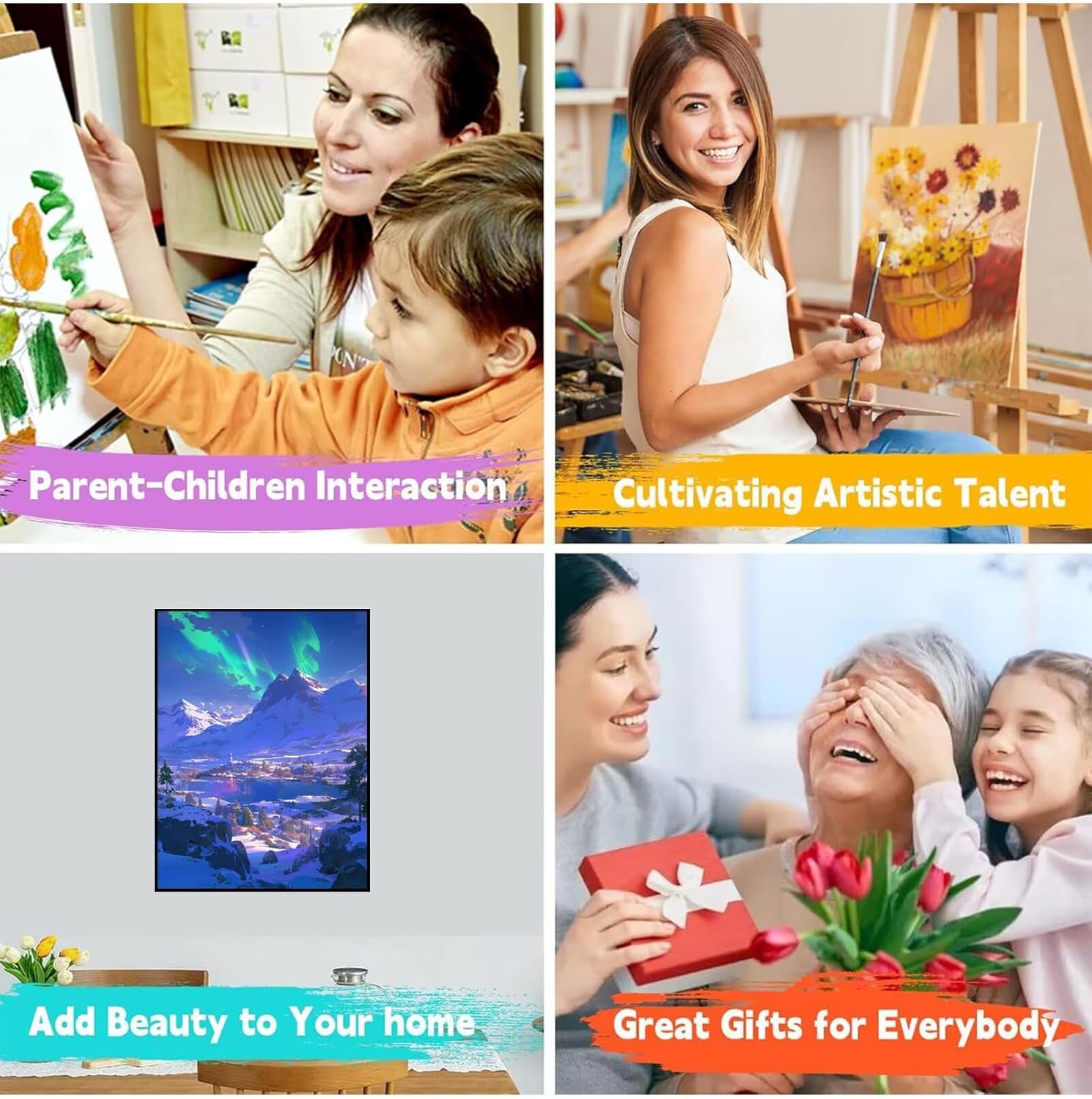 【DIPINGERE CON I NUMERI】:Include una tela (con frame), 3 pennelli da pittura, 1 set di colori di pigmento acrilico e un campione di immagine. Siamo pronti per tutto, aspettando solo che tu dipingi la pittura su tela. 【MATERIALI DI ALTA QUALITÀ】:Realizzato con vernici acriliche di alta qualità e resistenti alla sbiadida e tela spessa e strutturata, questo kit garantisce colori vibranti e opere d'arte di lunga durata. Materiali Superiore lo rendono sicuro per bambini e adulti. La tela in cotone puro, ha buon assorbimento d'acqua e capacità di respirazione, facile da conservare per un lungo periodo di tempo. 【FACILE DA DIPINGERE】:Design senza stress per tutte le età: grandi zone numerate, vernici ad asciugatura rapida e una tela leggera che rimane piatta durante il lavoro. Include istruzioni dettagliate passo dopo passo con aiuti visivi per un progresso semplice. 【REGALI PERFETTI】:Un regalo pensato per compleanni, vacanze o vari giorni di commemorazione. Viene elegantemente scatolato con un design pronto per regali. Ideale per gli amanti dell'arte, gli appassionati di fai da te o chiunque cerchi relax. I pezzi finiti possono essere incorniciati per splendidi arredi domestici! 【SERVIZIO POST-VENDITA】:Godetevi un supporto senza preoccupazioni con il nostro team di assistenza clienti dedicato. Se incontri problemi con il tuo kit, sia che mancano pezzi o preoccupazioni di qualità, contattaci, risolveremo attivamente per te. La tua soddisfazione è la nostra priorità!