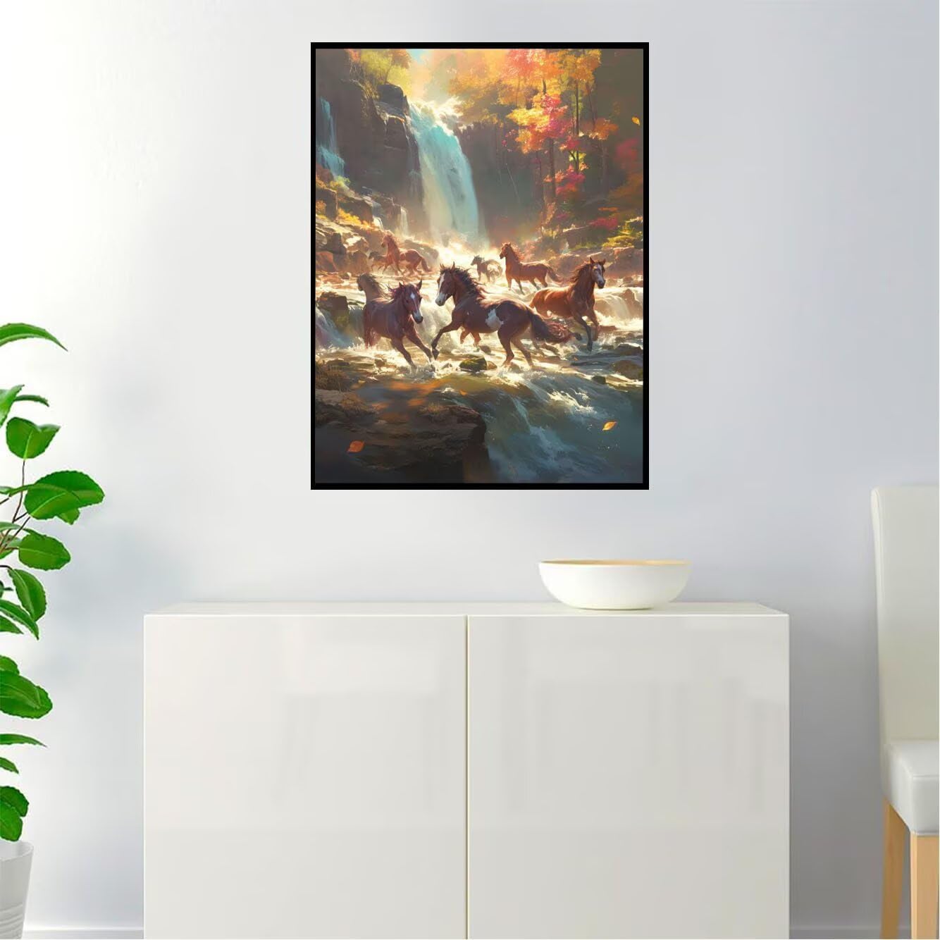 Dipingere Con i Numeri bambini Cavalli, Dipingere Con i Numeri Adulti, 70x100cm, Fai Da Te creativo adulti Pigmento Acrilico Pittura, ideale Autunno Signora Regali, Con Cornice Disegno Cascate A-488