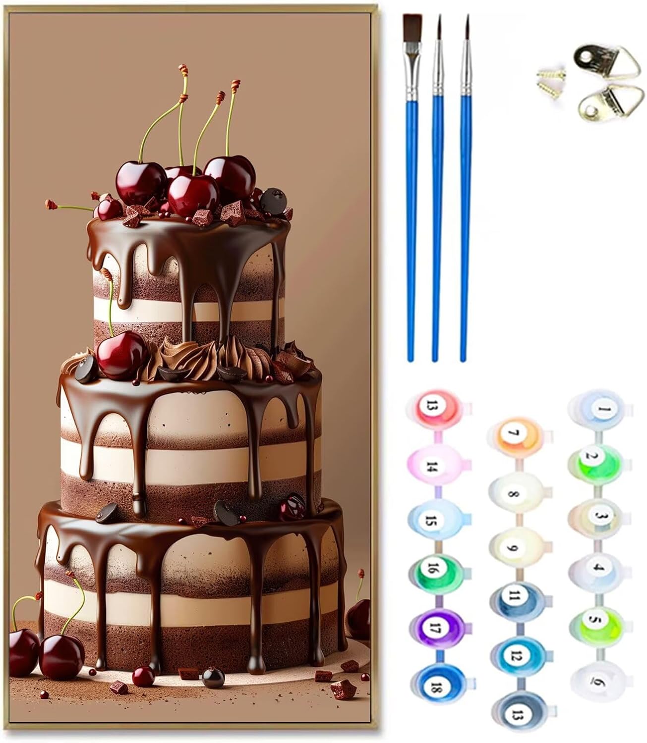 Dipingere Con i Numeri Bambini cioccolato, torta Quadri da Dipingere Numerati, Paint by Numbers Kit di Pittura su Tela per Principianti, Numeri per con Vernici e 3 pennelli, Home Decor 30x60cm H-843