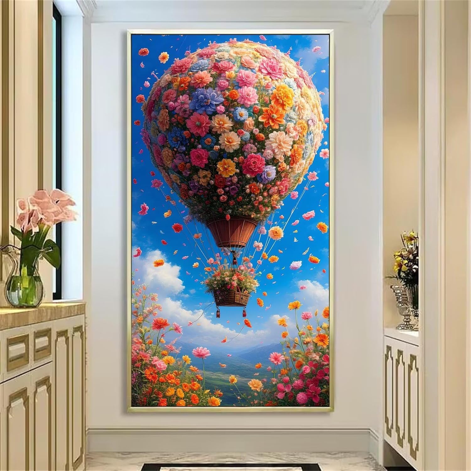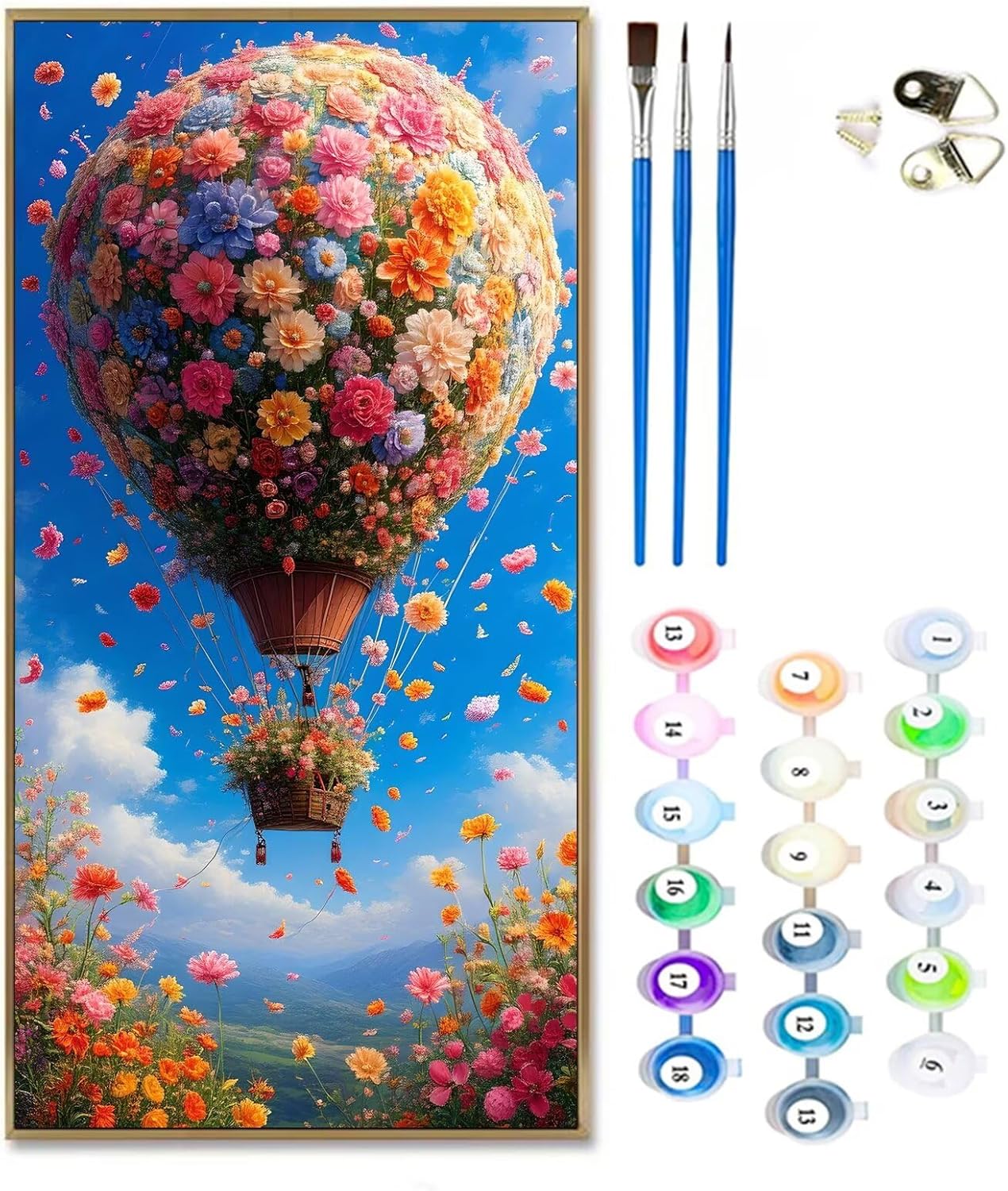 Dipingere Con i Numeri Bambini fiore, Mongolfiera Quadri da Dipingere Numerati, Paint by Numbers Kit di Pittura su Tela per Principianti,Numeri per con Vernici e 3 pennelli,Home Decor 80x160cm H-719