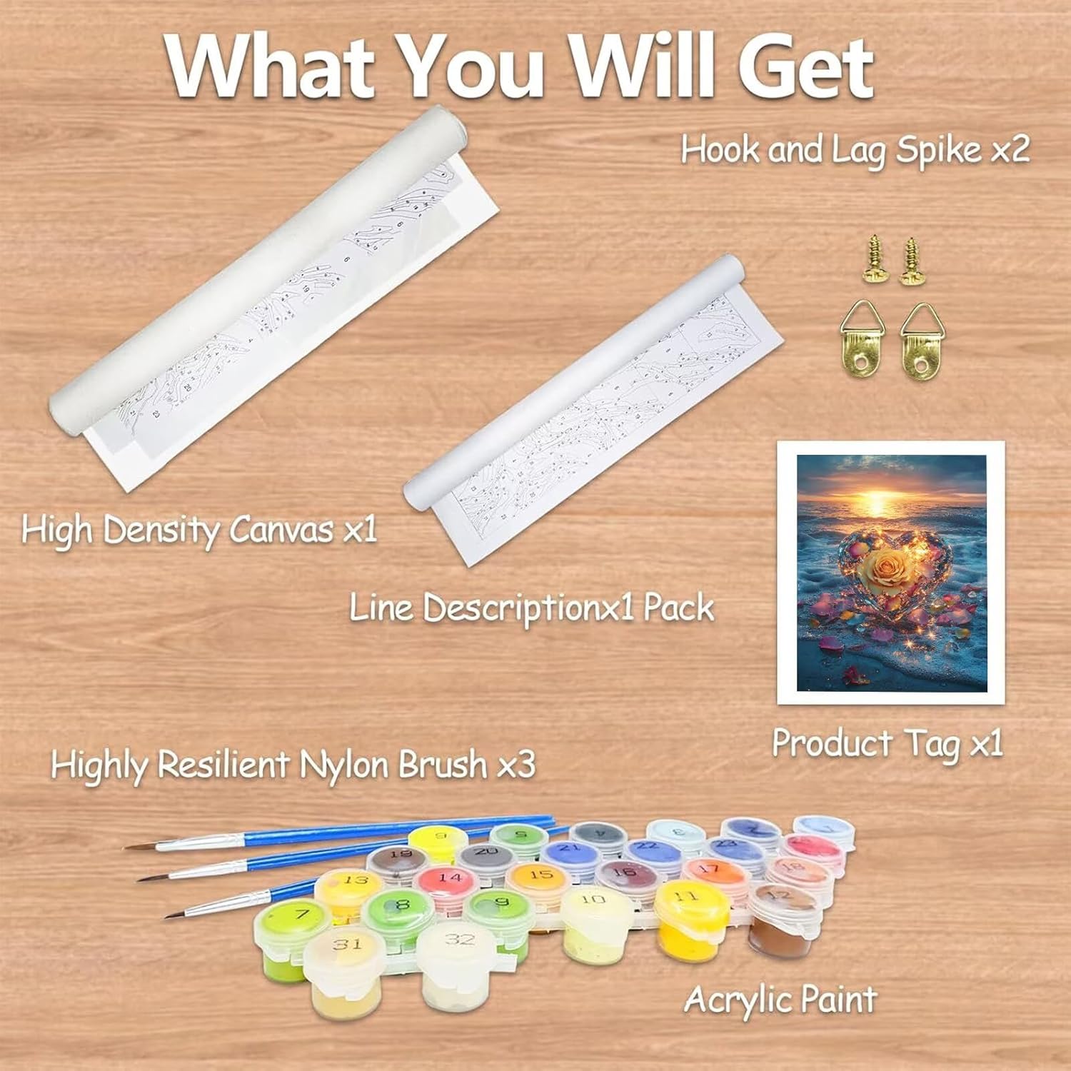 【DIPINGERE CON I NUMERI】:Include una tela (con frame), 3 pennelli da pittura, 1 set di colori di pigmento acrilico e un campione di immagine. Siamo pronti per tutto, aspettando solo che tu dipingi la pittura su tela. 【MATERIALI DI ALTA QUALITÀ】:Realizzato con vernici acriliche di alta qualità e resistenti alla sbiadida e tela spessa e strutturata, questo kit garantisce colori vibranti e opere d'arte di lunga durata. Materiali Superiore lo rendono sicuro per bambini e adulti. La tela in cotone puro, ha buon assorbimento d'acqua e capacità di respirazione, facile da conservare per un lungo periodo di tempo. 【FACILE DA DIPINGERE】:Design senza stress per tutte le età: grandi zone numerate, vernici ad asciugatura rapida e una tela leggera che rimane piatta durante il lavoro. Include istruzioni dettagliate passo dopo passo con aiuti visivi per un progresso semplice. 【REGALI PERFETTI】:Un regalo pensato per compleanni, vacanze o vari giorni di commemorazione. Viene elegantemente scatolato con un design pronto per regali. Ideale per gli amanti dell'arte, gli appassionati di fai da te o chiunque cerchi relax. I pezzi finiti possono essere incorniciati per splendidi arredi domestici! 【SERVIZIO POST-VENDITA】:Godetevi un supporto senza preoccupazioni con il nostro team di assistenza clienti dedicato. Se incontri problemi con il tuo kit, sia che mancano pezzi o preoccupazioni di qualità, contattaci, risolveremo attivamente per te. La tua soddisfazione è la nostra priorità!