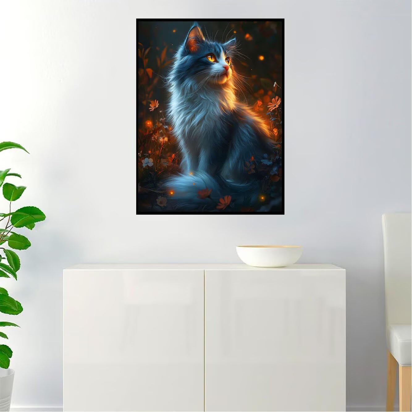 Dipingere Con i Numeri bambini Gatto, Dipingere Con i Numeri Adulti, 40x50cm, Fai Da Te creativo adulti Pigmento Acrilico Pittura Olio, ideale Autunno Signora Regali, Con Cornice Disegno Grigio A-512
