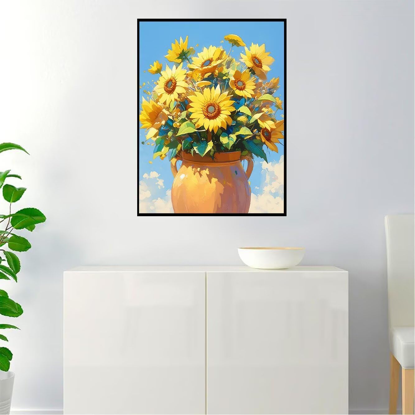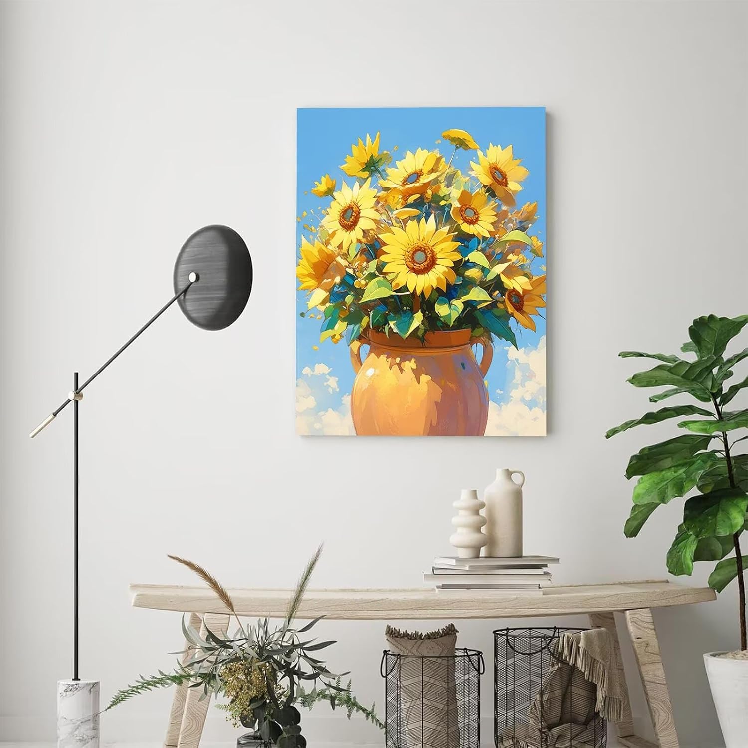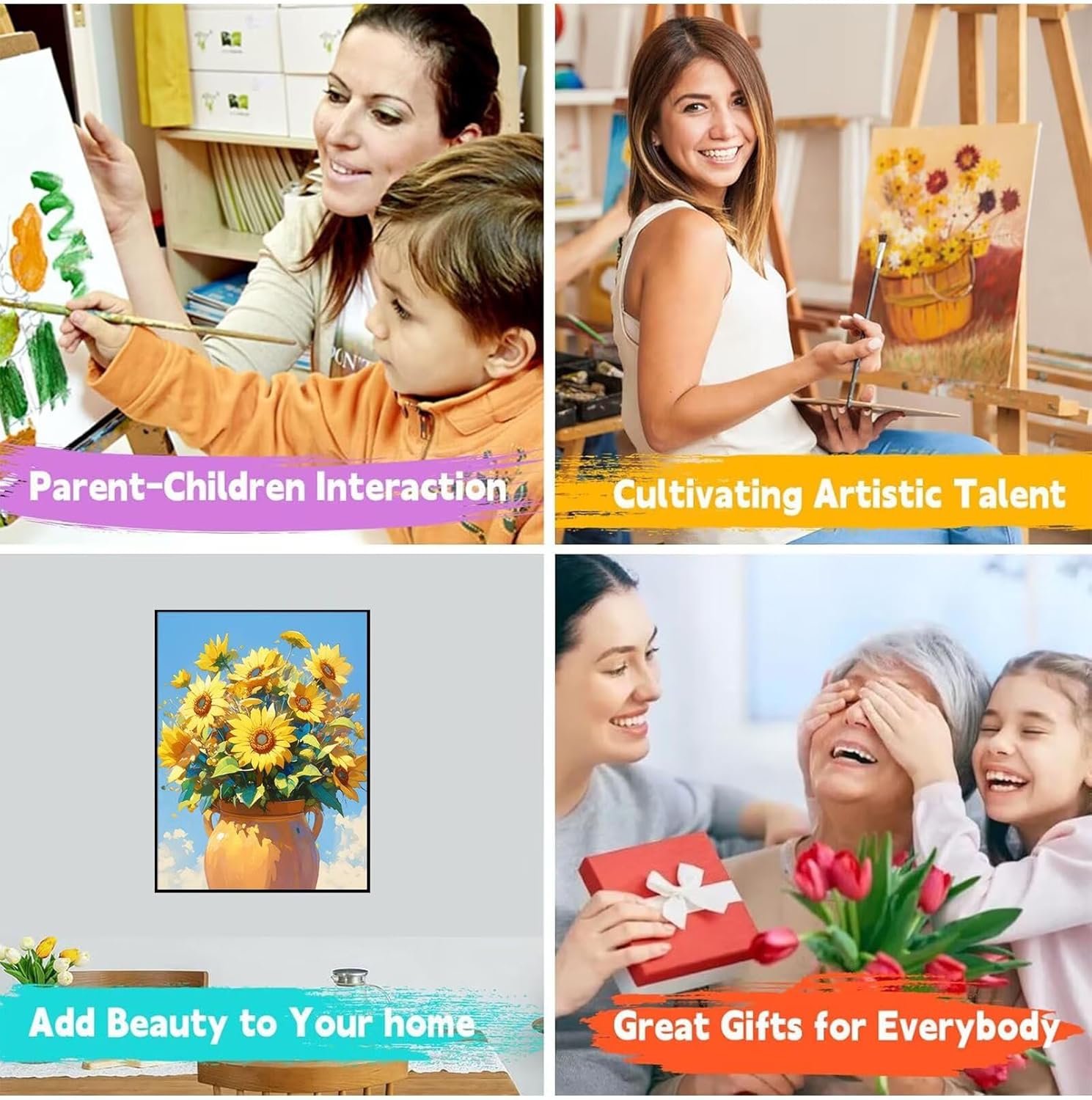 Dipingere Con i Numeri bambini Girosoli, Dipingere Con i Numeri Adulti, 70x100cm, Fai Da Te creativo adulti Pigmento Acrilico Pittura, ideale Autunno Signora Regali, Con Cornice Disegno Vaso A-768