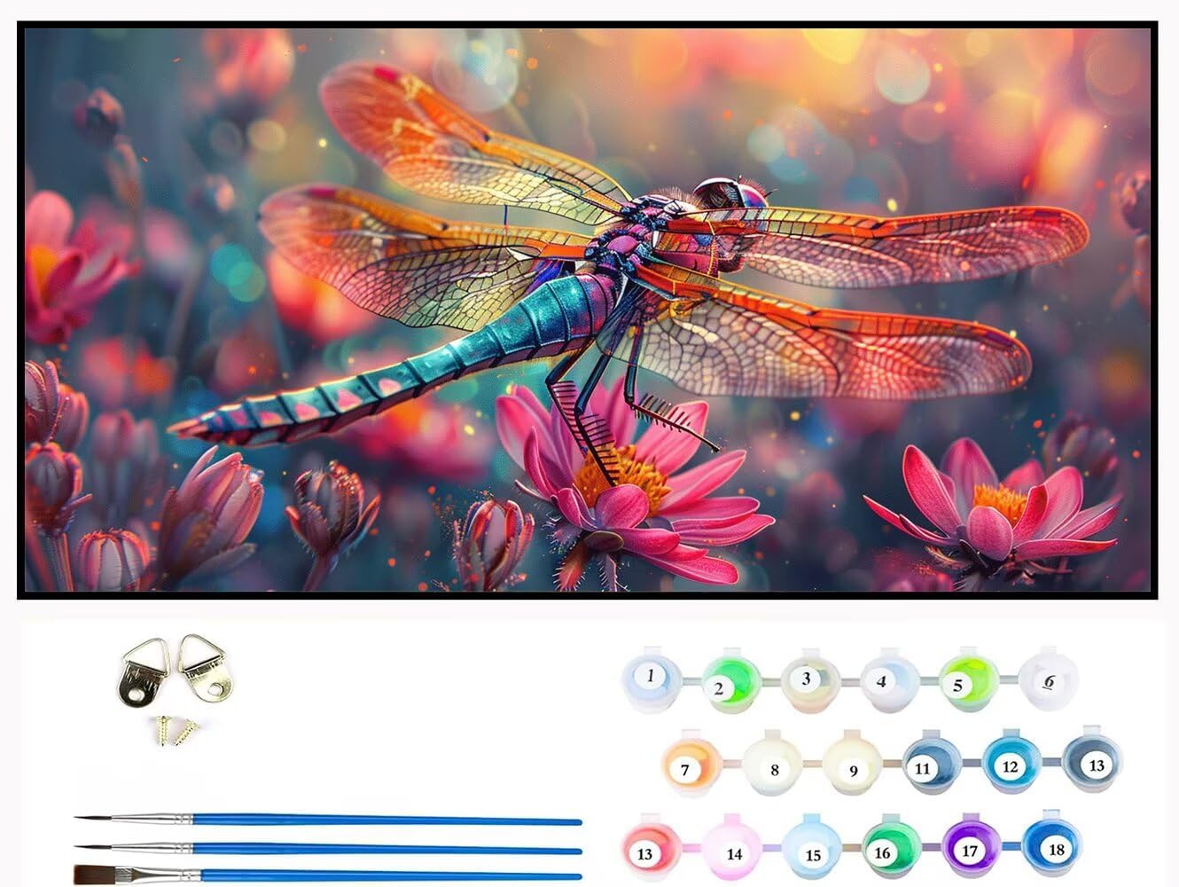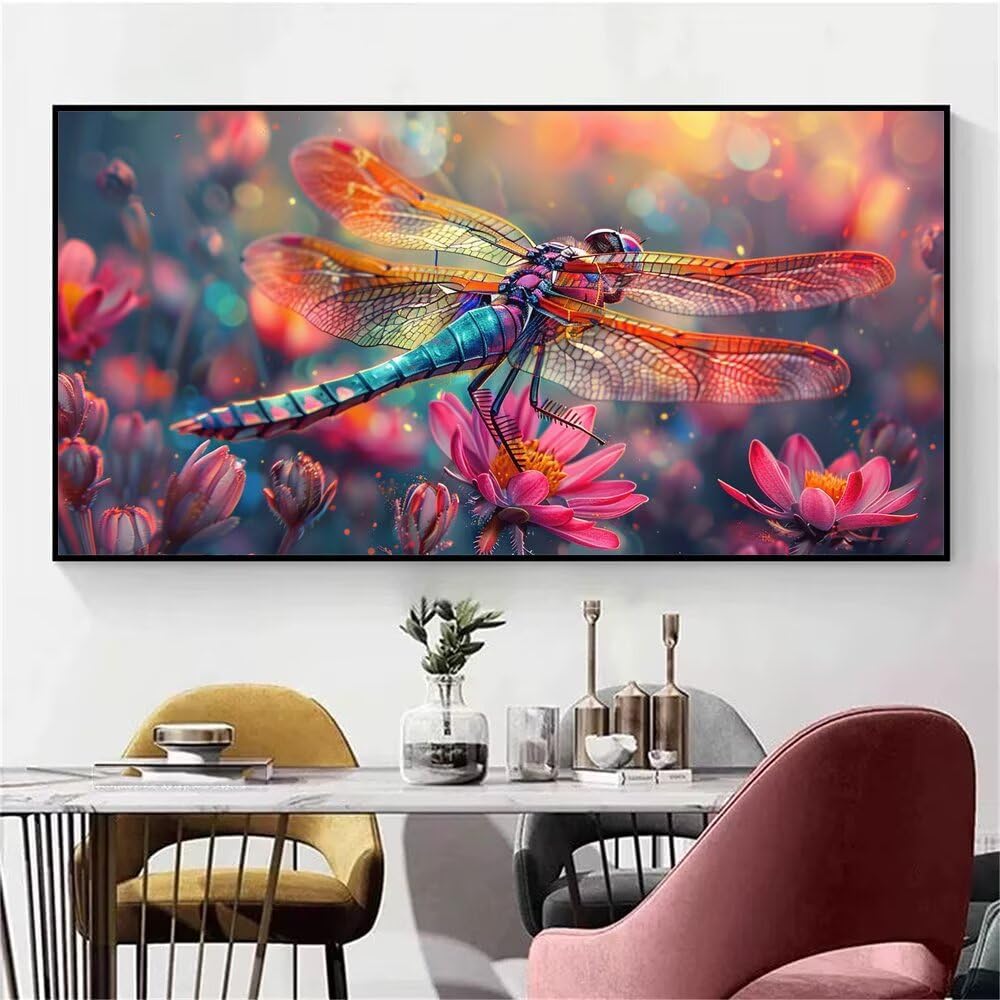 Dipingere Con i Numeri Bambini libellula, fiore Quadri da Dipingere Numerati, Paint by Numbers Kit di Pittura su Tela per Principianti, Numeri per con Vernici 3 pennelli, Home Room Decor 40x80cm H-345