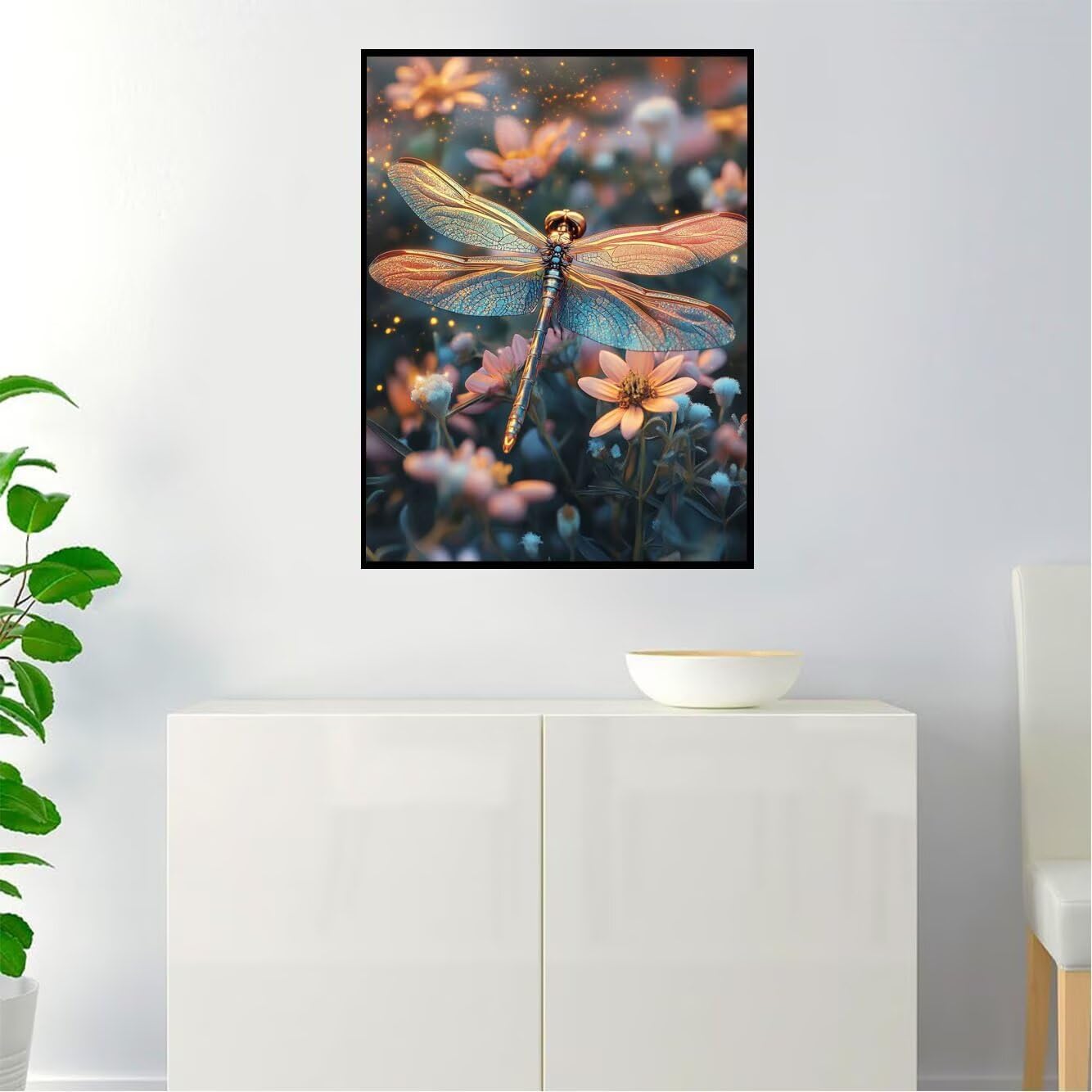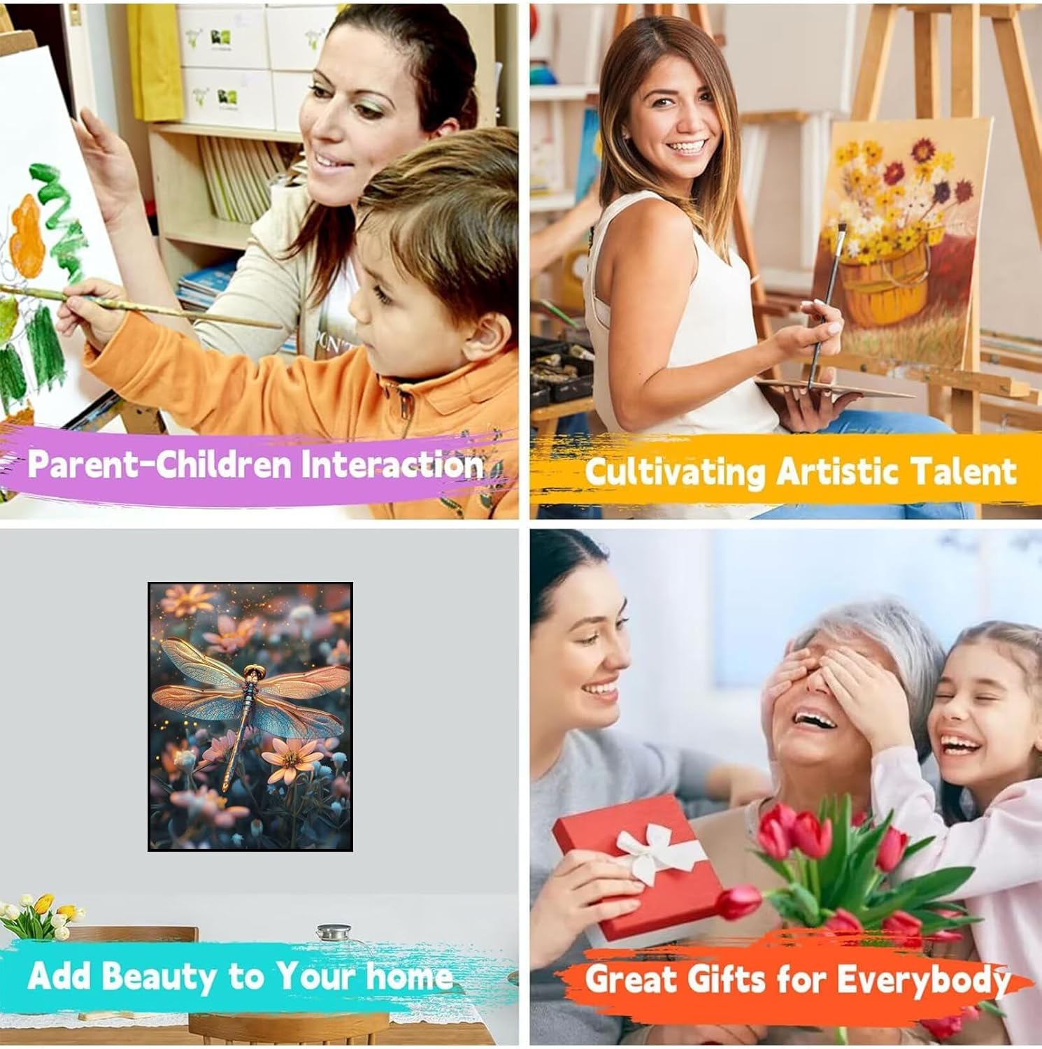 Dipingere Con i Numeri bambini Oro, Dipingere Con i Numeri Adulti, 50x70cm, Fai Da Te creativo adulti Pigmento Acrilico Pittura Olio, ideale Autunno Signora Regali, Con Cornice Disegno Dragonfly A-376
