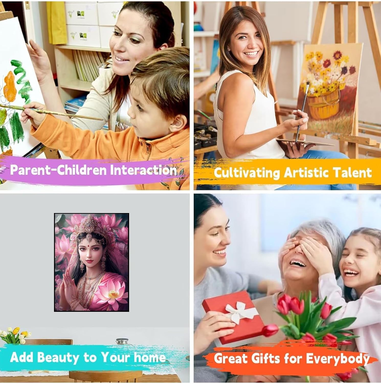 【DIPINGERE CON I NUMERI】:Include una tela (con frame), 3 pennelli da pittura, 1 set di colori di pigmento acrilico e un campione di immagine. Siamo pronti per tutto, aspettando solo che tu dipingi la pittura su tela. 【MATERIALI DI ALTA QUALITÀ】:Realizzato con vernici acriliche di alta qualità e resistenti alla sbiadida e tela spessa e strutturata, questo kit garantisce colori vibranti e opere d'arte di lunga durata. Materiali Superiore lo rendono sicuro per bambini e adulti. La tela in cotone puro, ha buon assorbimento d'acqua e capacità di respirazione, facile da conservare per un lungo periodo di tempo. 【FACILE DA DIPINGERE】:Design senza stress per tutte le età: grandi zone numerate, vernici ad asciugatura rapida e una tela leggera che rimane piatta durante il lavoro. Include istruzioni dettagliate passo dopo passo con aiuti visivi per un progresso semplice. 【REGALI PERFETTI】:Un regalo pensato per compleanni, vacanze o vari giorni di commemorazione. Viene elegantemente scatolato con un design pronto per regali. Ideale per gli amanti dell'arte, gli appassionati di fai da te o chiunque cerchi relax. I pezzi finiti possono essere incorniciati per splendidi arredi domestici! 【SERVIZIO POST-VENDITA】:Godetevi un supporto senza preoccupazioni con il nostro team di assistenza clienti dedicato. Se incontri problemi con il tuo kit, sia che mancano pezzi o preoccupazioni di qualità, contattaci, risolveremo attivamente per te. La tua soddisfazione è la nostra priorità!