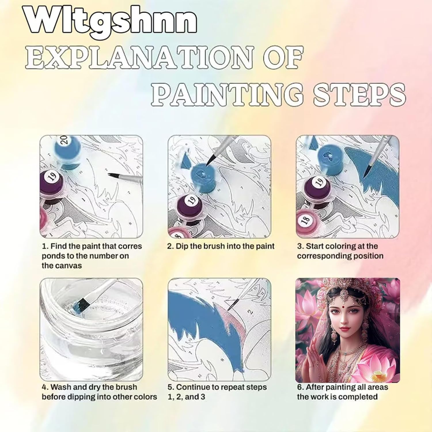 Presentiamo il kit Painting By Numbers per adulti, un modo emozionante e divertente per esplorare il mondo della pittura. Questo kit è perfetto per persone di tutte le età e livelli di abilità che vogliono creare il proprio capolavoro senza il fastidio di mescolare i colori. Con le sue istruzioni facili da seguire, questo kit di vernice per numeri è il modo perfetto per iniziare a dipingere. Passi di disegno: 1. Trova il numero di vernice corrispondente sulla tela 2. Coprire l'area del blocco di colore corrispondente con la vernice 3. Dopo aver finito la pittura di un'area, lavare la penna 4. Dopo aver lavato la penna, asciugare, e poi dipingere un altro colore Presta attenzione a: 1. A causa degli effetti di illuminazione e degli angoli di tiro, c'è differenza di colore nel prodotto, si prega di capire. 2. A causa della misurazione manuale, c'è una tolleranza nella dimensione del prodotto. 3.In caso di compilare il colore sbagliato, è possibile aspettare che la vernice si asciughi e copre la parte sbagliata con il colore corretto sulla superficie. Una volta finita la vernice, si dovrebbe mettere il coperchio sulla vernice per evitare il deterioramento