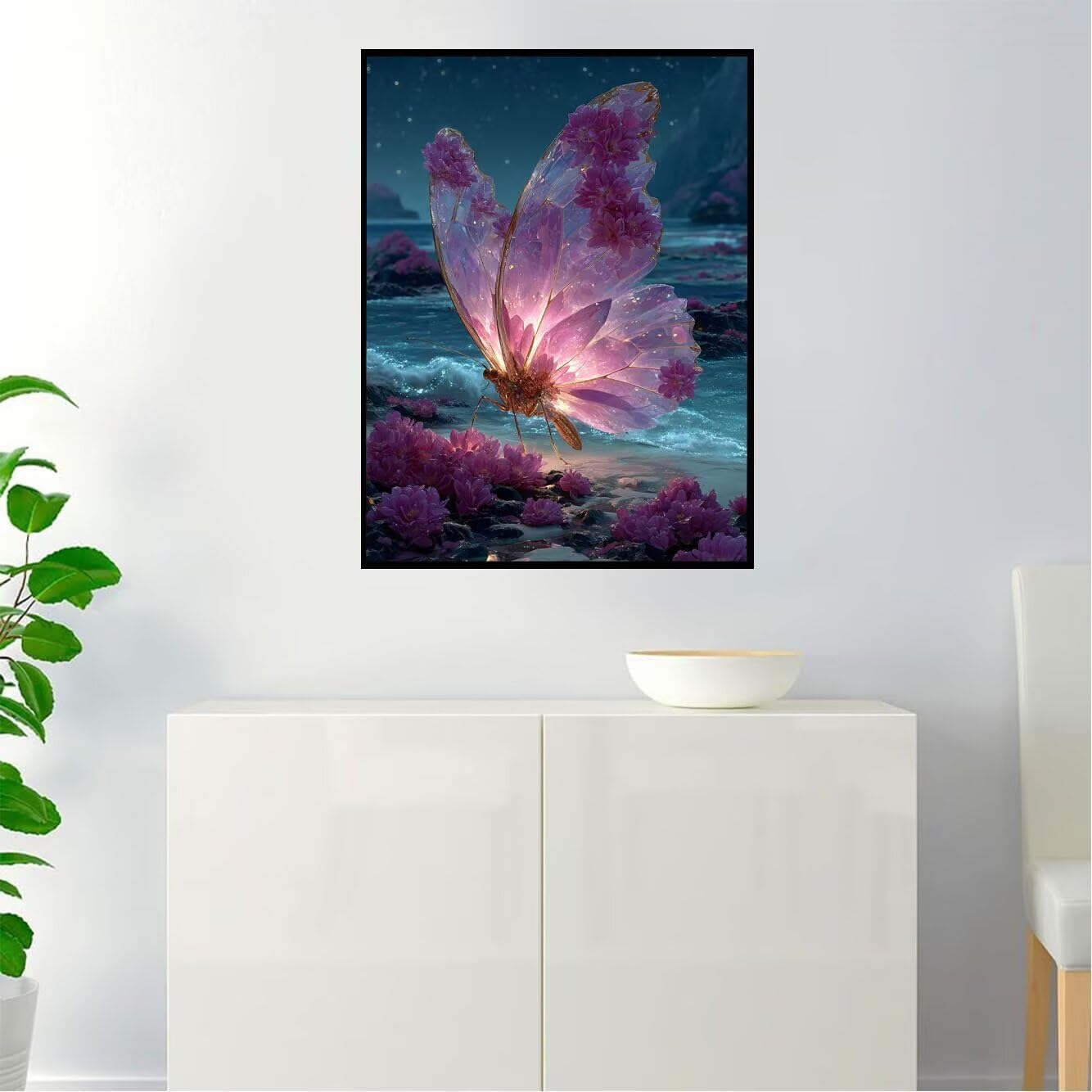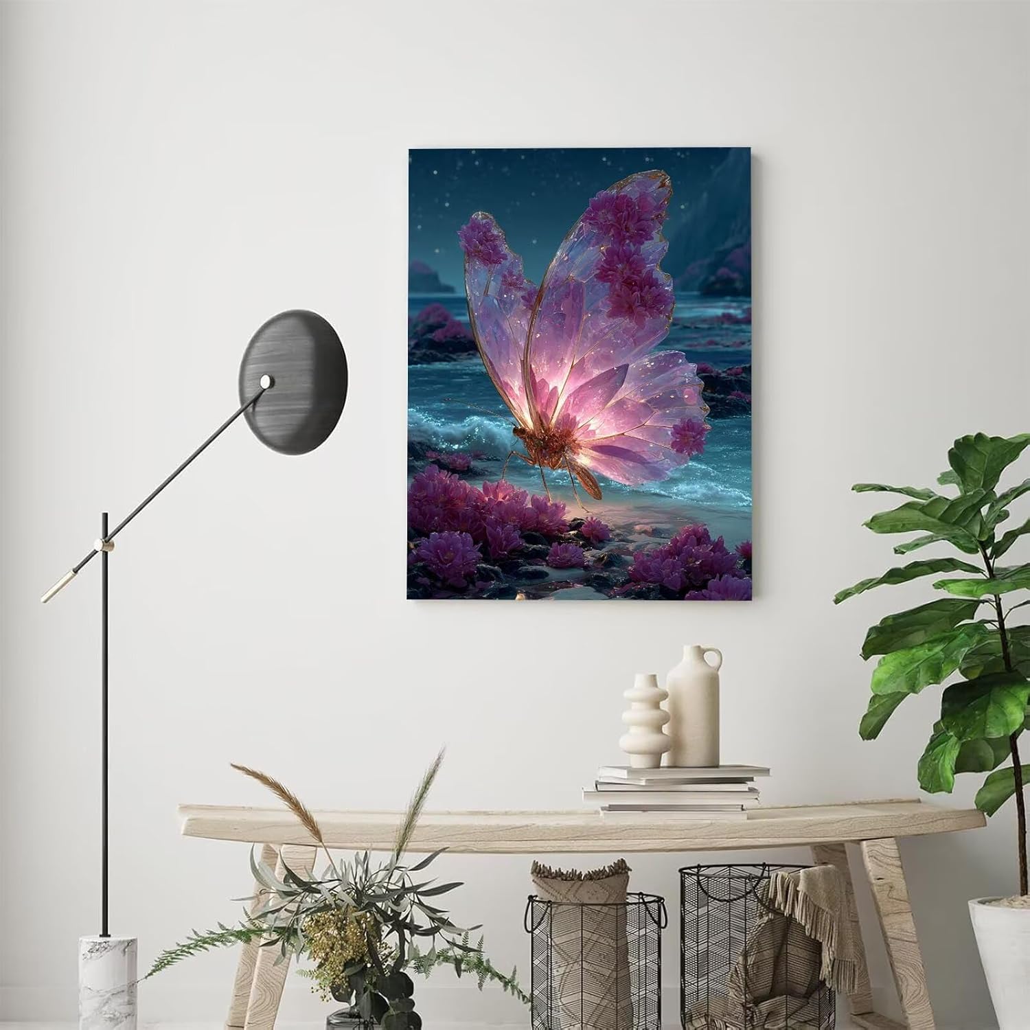 Dipingere Con i Numeri bambini Rosa, Dipingere Con i Numeri Adulti, 70x100cm, Fai Da Te creativo adulti Pigmento Acrilico Pittura, ideale Autunno Signora Regali, Con Cornice Disegno Farfalla A-116