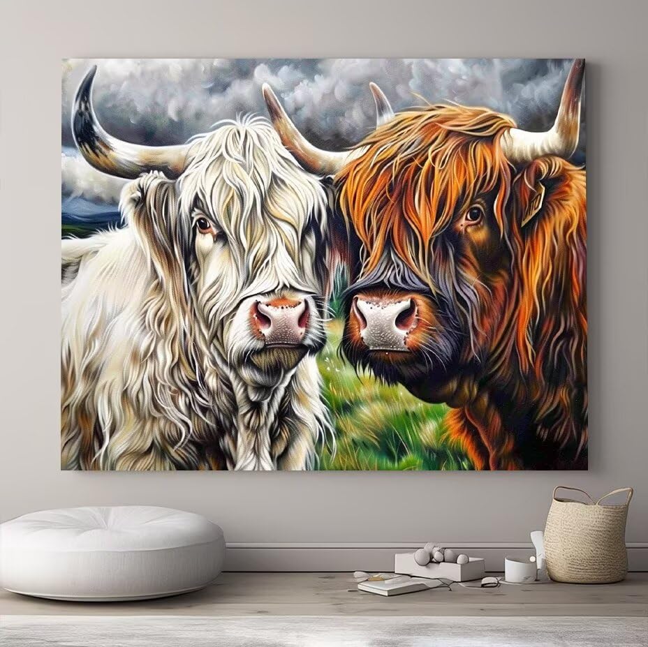 Dipingere con i Numeri Bovini Di Montagna per Adulti Bambini Principianti, Paint by Numbers Kit Fai da Te Quadri da Dipingere Numerati Kit Passatempo per Adulti Decora la Casa, 25x35cm, Animale J-177