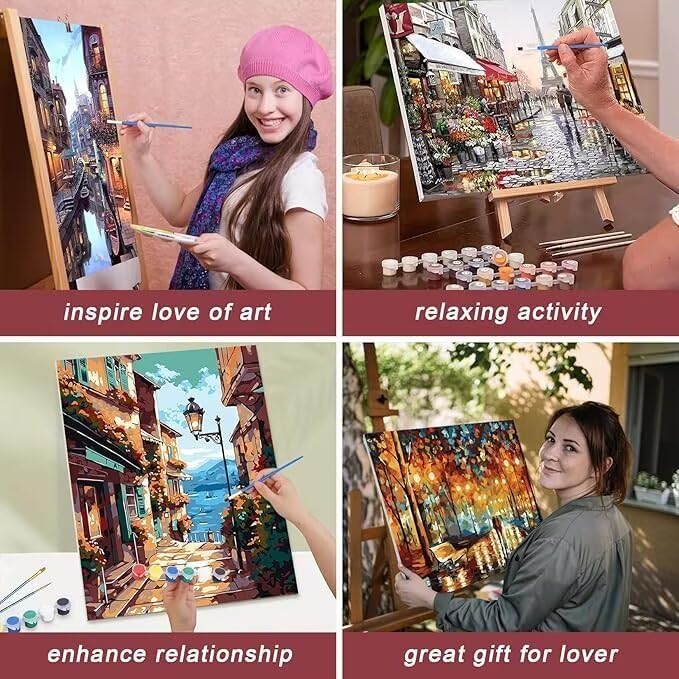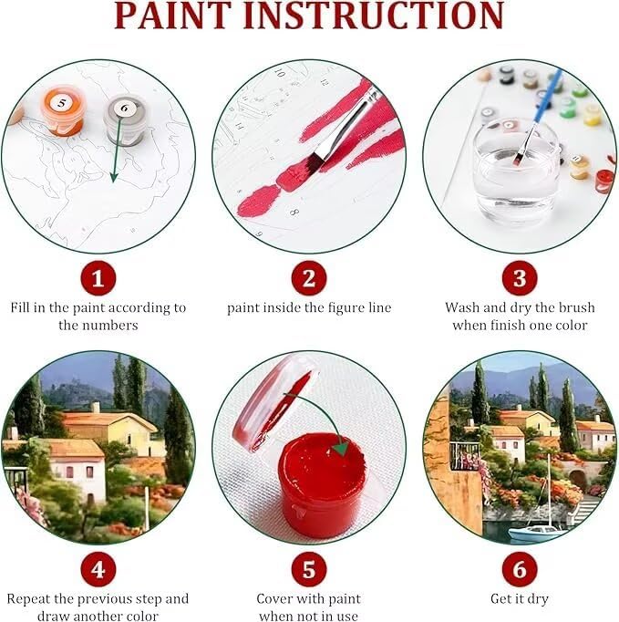 Benvenuti a Giyuco Giyuco paint by numbers kit è il regalo ideale per il giorno di Natale, Halloween, San Valentino, Compleanno, Festa della Mamma, Ringraziamento, Pasqua. Con bellissimi disegni e divertimento creativo, renderlo un regalo memorabile! Specificazione: Dimensione: 25x35cm/10x14in Telaio: NON Compreso Passo DIY: 1. Riempire la vernice secondo i numeri. 2. dipingere all'interno della linea di figura. 3. Lavare e asciugare il pennello quando finisci un colore. 4. Ripetere il passaggio precedente e disegnare un altro colore. 5. Coprire con vernice quando non in uso. 6. Asciugarlo. Suggerimento: 1. La confezione contiene vari pennelli che è possibile utilizzare in modo flessibile. I più grandi vengono utilizzati per applicare blocchi di colore grandi, mentre quelli più piccoli vengono utilizzati per applicare bordi. 2. Quando si dipinge, cercare di mantenere la direzione della pittura coerente il più possibile. 3. Se si sente che il colore della vernice è troppo chiaro, è possibile applicare vernice più spessa nella pittura, è anche possibile aspettare che la vernice si asciughi prima di applicare un altro strato di vernice. 4. Pulire il pennello prima di colorare per ottenere risultati migliori. 5. Se si applica la vernice sbagliata durante la colorazione, va bene. Puoi aspettare che la vernice si asciughi e applicare nuovamente la vernice corretta. SUGGERIMENTI: 1. A causa delle differenze individuali nel monitor, ci possono essere lievi variazioni di colore nelle immagini viste. Si prega di fare riferimento al prodotto effettivo per la precisione. 2. Se accidentalmente si ottiene vernice sui vestiti, si prega di pulirli immediatamente. 3. Se non è possibile completare il prodotto in una sola volta, coprire la vernice con un coperchio quando non è in uso per evitare che la vernice si asciughi.