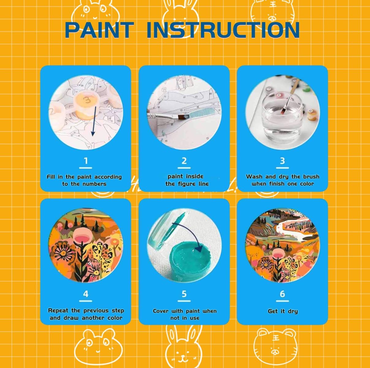 【Kit per Dipingere Con i Numeri】Il kit per dipingere con i numeri per adulti include un kit completo di strumenti, inclusi 3 pennelli in nylon, 2 chiodi a uncino, 1 pigmento colorato e 1 tela testurizzata prestampata. Apri la confezione e puoi iniziare a dipingere immediatamente. 【DIY Dipingere con i Numeri】Con il nostro kit per dipingere con i numeri per adulti, l'area dei numeri è più facile da distinguere e la vernice è più facile da applicare. Che tu sia un pittore esperto o inesperto, puoi creare opere d'arte straordinarie. 【Pigmenti per Dipingere Con i Numeri】I nostri pigmenti hanno un'elevata coprenza e colori brillanti, che renderanno i dipinti a olio digitali che creerai più belli e facili da conservare. Puoi colorarli direttamente senza mescolare i pigmenti durante la creazione. 【Regali e decorazioni creative】La pittura a olio digitale può essere il regalo perfetto per familiari e amici in occasione di festività speciali come Natale, Ringraziamento, Pasqua, compleanni, ecc. Allo stesso tempo, è ideale per la decorazione della casa e può essere utilizzata per decorare le pareti di soggiorno, cucina e camera da letto, aggiungendo un tocco di colore artistico alla tua casa. 【ZGNCDWEU】Attribuiamo grande importanza all'esperienza del cliente. Per qualsiasi domanda o dubbio, non esitate a contattarci immediatamente e risolveremo il problema in tempo.
