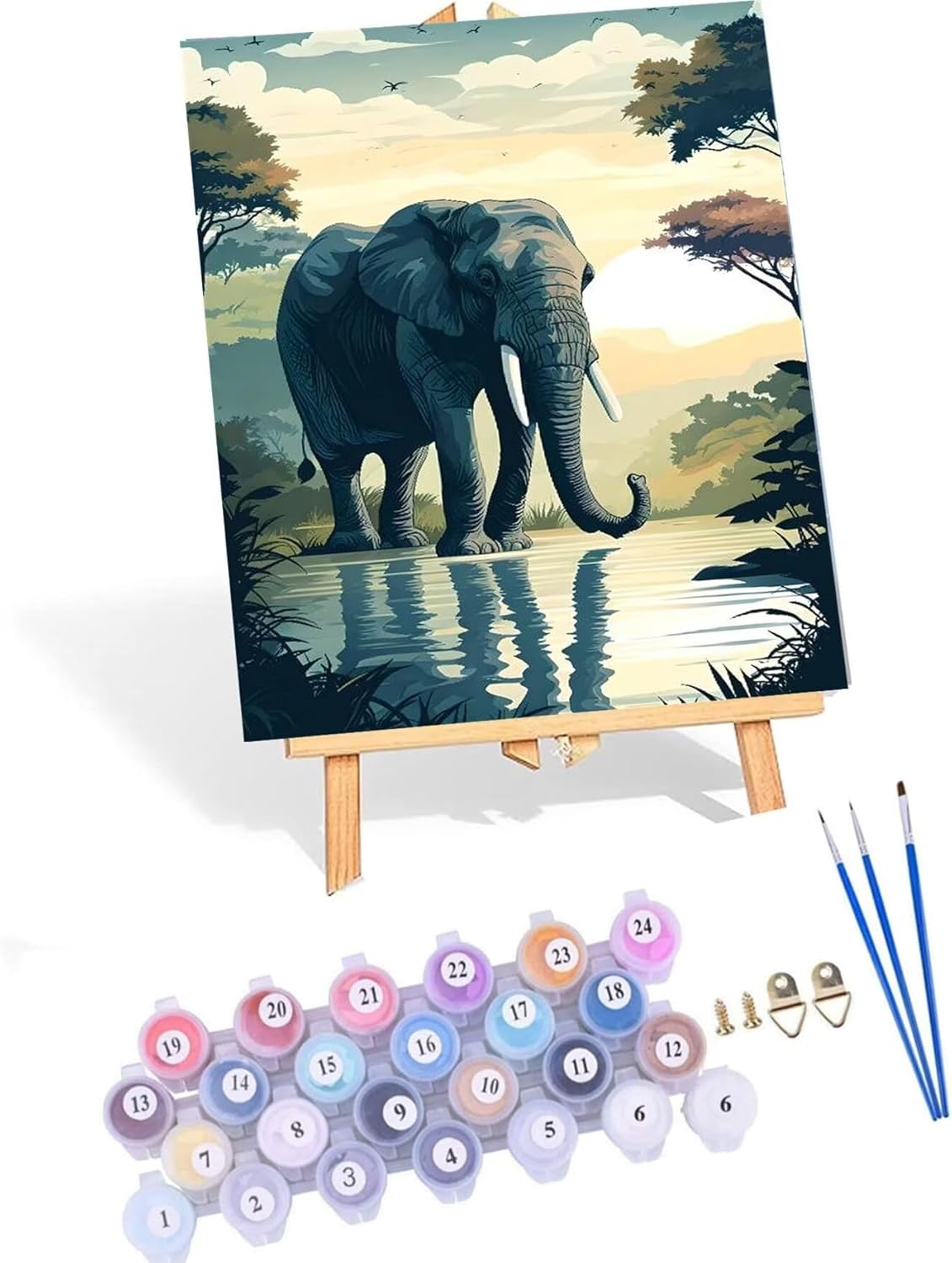 Dipingere con i Numeri Elefante animale Quadri da Dipingere Numerati, Paint by Numbers Adulti, Colorare con i Numeri Kit Pittura Bambini con Pennelli Pigmento Acrilico Disegno Pittura 25x35cm s-1862