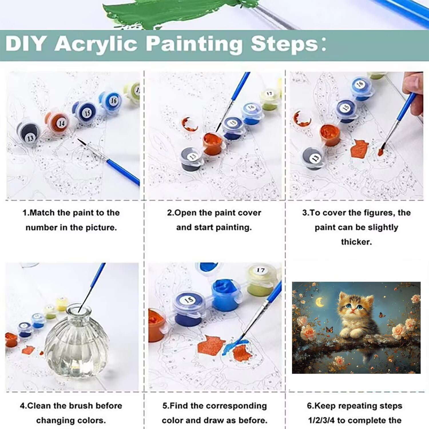 Come produttore professionista di dipingere con i numeri, Tloome si è impegnato a offrire prodotti migliori ai propri clienti, abbandonando modelli progettati tramite software di massa, affidando a designer professionisti la regolazione manuale dei dettagli di ogni modello e l'abbinamento accurato dei colori, rendendo il quadro finito più vivido e realistico. Ci auguriamo che tu possa divertirti qui. Iniziamo insieme un felice viaggio di pittura! Passaggi per il fai da te : 1. Apri la scatola. Controlla il colore della vernice e l'ordine dei numeri sul dipinto a olio. 2. Srotola la tela e stirala delicatamente a una temperatura elevata per rimuovere eventuali pieghe o grinze. 3. Abbina ogni barattolo di vernice numerato all'area pre-numerata sulla tela. 4. Immergi la punta del pennello e inizia a dipingere! Utilizzando solo la punta aumenterai la precisione dei tuoi tratti e rimarrai all'interno delle linee. 5. Una volta terminato, mettilo in una cornice adatta a tua scelta. Nota : 1. Dipingi con i numeri dei colori e completa il lavoro uno per uno. 2. La vernice si asciuga facilmente, quando non la usi, copri il coperchio. Se la vernice è troppo asciutta, aggiungi 1 o 2 gocce d'acqua per mescolare uniformemente, ricorda di non usarne troppa. 3. Se versi il colore sbagliato, puoi aspettare che la vernice si asciughi, quindi coprire la parte sbagliata con il colore corretto sulla superficie. Oppure puliscilo con un po' d'acqua dopo l'asciugatura, quindi applica il colore corretto. Le immagini sopra non includono tutti i nostri dipingere con i numeri adulti. Abbiamo migliaia di modelli diversi: gatto, animale, cane, gufo, anime, leone, farfalla, fiore, cavallo, tigre, paesaggio, spiaggia.. I nostri possono anche essere realizzati su misura per adattarsi alle tue dimensioni, foto o immagini. Se sei interessato, clicca sul nostro negozio per altre scelte!