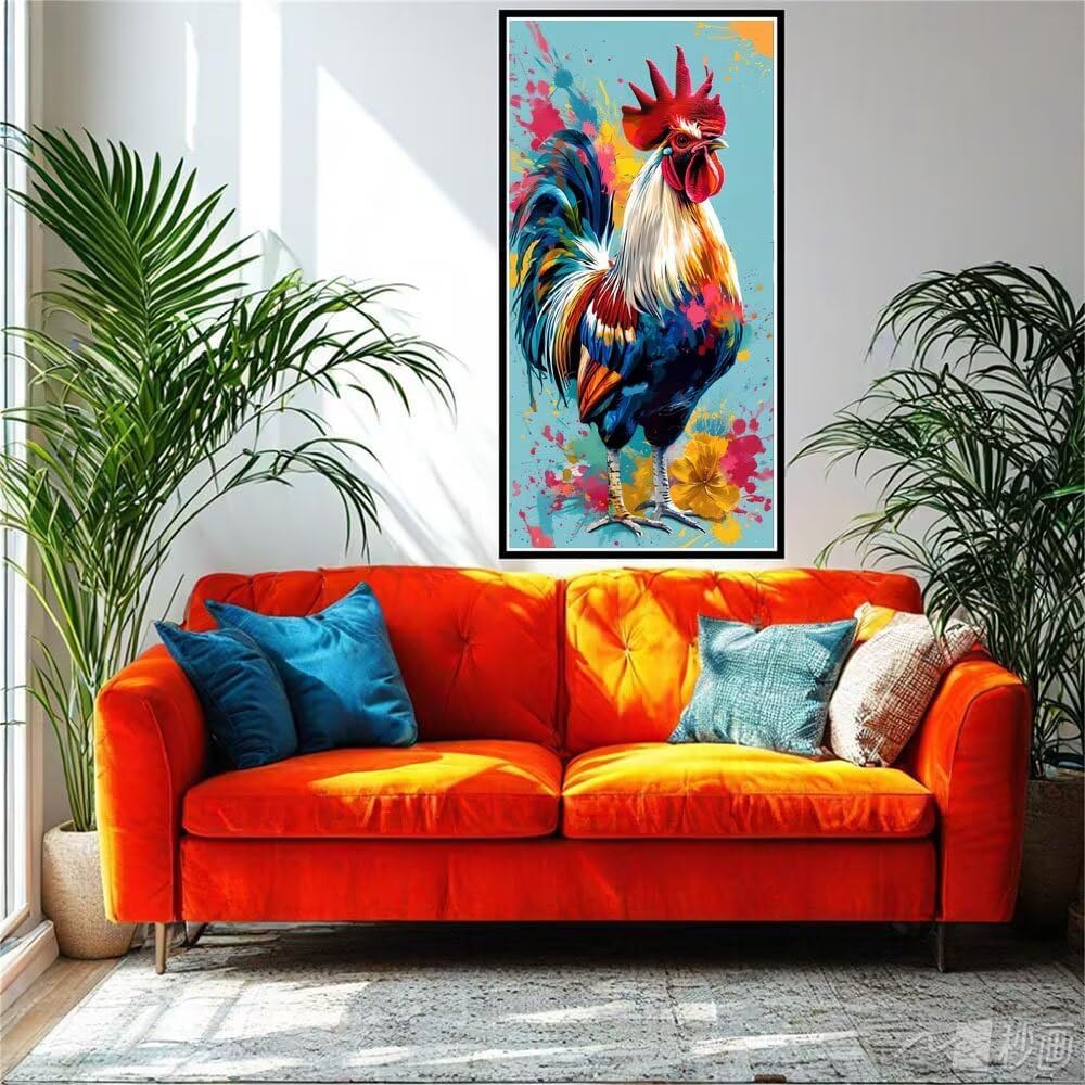 Dipingere con i Numeri Gallo Animale, XXL Dipingere con i Numeri Adulti, DIY kit Pittura Bambini, Con Pennelli e Colori Acrilici, Hobby Creativi Adulti, Regalo Decor Casa (Senza Cornice) 20x40cm L-735