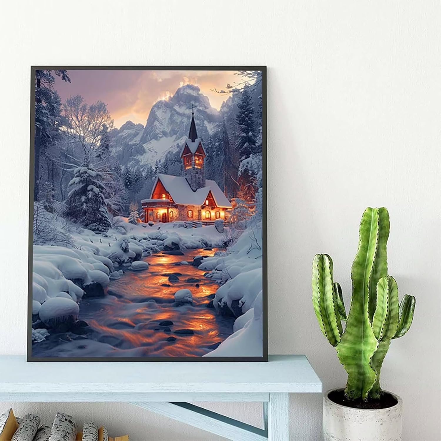 Dipingere con i Numeri Paesaggio Dipingere con i Numeri Adulti, Paint by Numbers Chiesa Paint by Numbers Adulti con 3 Pennelli e Vernice Acrilica per Decorazioni Casa, Regalo Donna 40x50cm -zp253H7