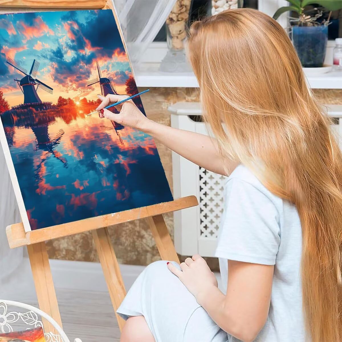 Dipingere con i Numeri Paesaggio, Mulino a vento Dipingere con i Numeri Adulti con Cornice, Kit Pittura Adulti Acrilica Fai da Te Creativo Paint by Numbers per Decorazioni Casa Regalo 40x50cm Li9-2653