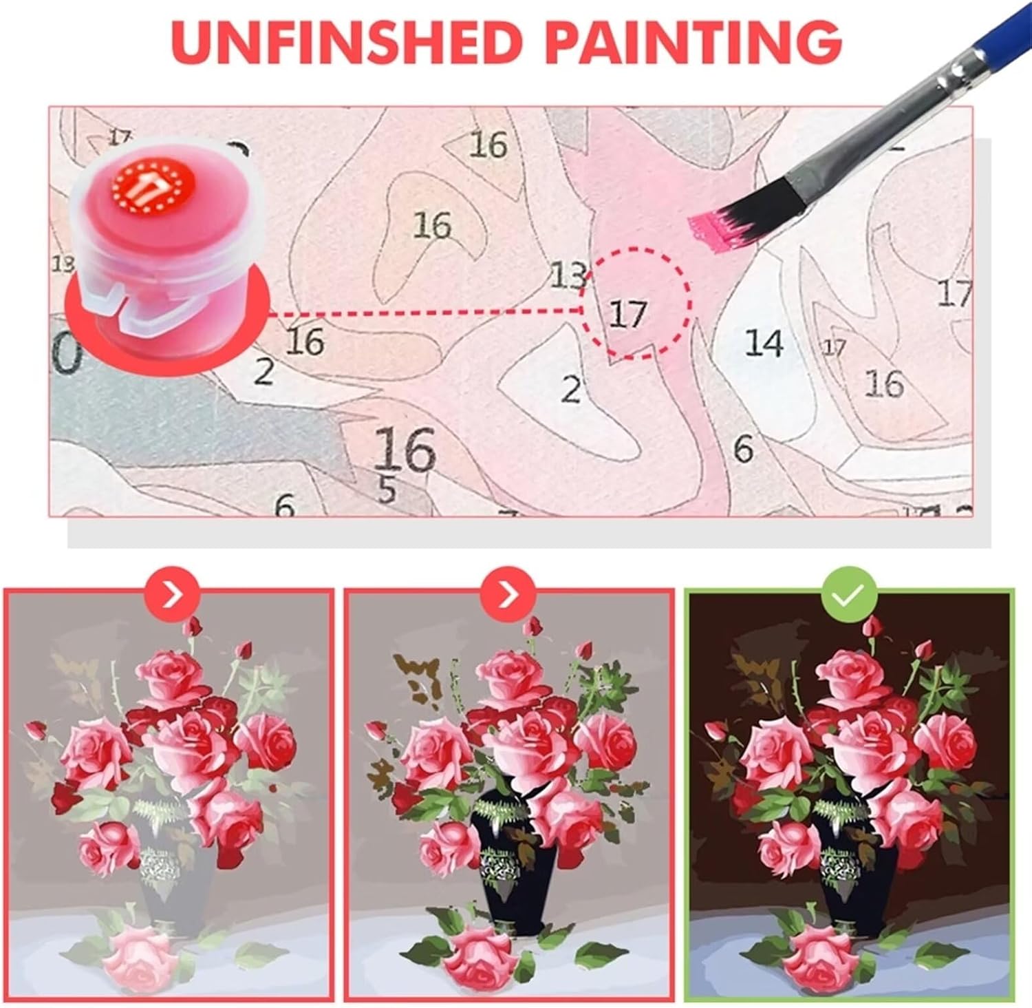 Kit di pittura con i numeri: 1 pezzo di tela prestampata (senza cornice), 1 set di colori acrilici, 1 set di pennelli (inclusi 3 pezzi). Pittura a olio fai da te:Questo kit di pittura artistica testurizzata prestampata non è finito, che hanno bisogno di dipingere da soli e ti fanno sentire come un pittore, è possibile creare un dipinto molto bello e artistico riempiendo i colori corrispondenti in base ai numeri sulla tela, che è facile da usare e facile da usare. Pittura acrilica di Numbers: vernice acrilica rispettosa dell'ambiente, colore pieno brillante, facile da colorare, asciugatura rapida, forte copertura.a Rilassare la mente:Nel processo di pittura, si può concentrare l'attenzione per alleviare la pressione e la tensione e dedicarsi al processo di creazione dei dipinti; non solo si può coltivare la pazienza, ma anche alleviare la pressione, regolare l'umore e divertirsi nel processo di creazione. Home Decor & Regali: Il tuo capolavoro finito offre anche un ottimo modo per illuminare la tua casa! Immagina l'orgoglio e la gioia di appendere una squisita opera d'arte che hai creato da solo. È il regalo perfetto da regalare ad amici e persone care per compleanni, Natale e altre feste.