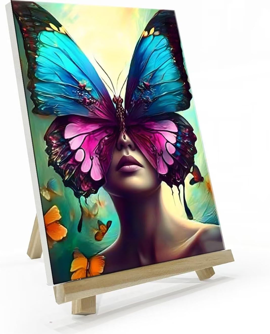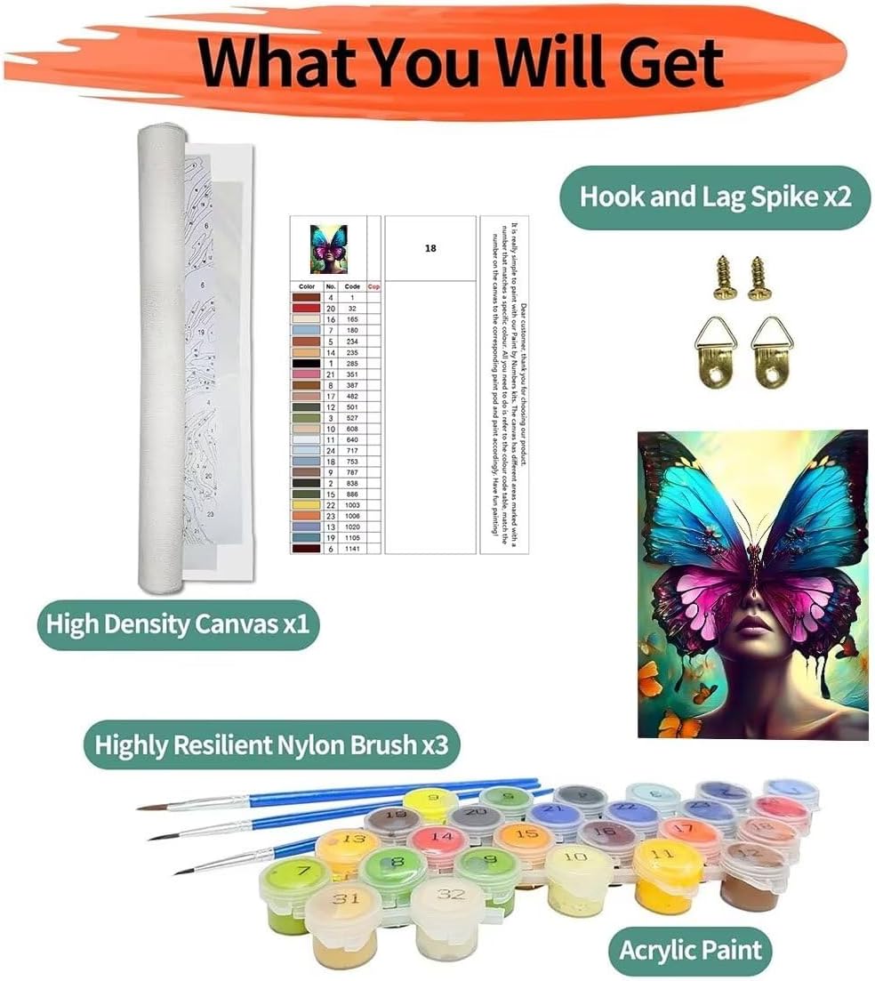 Dipingere con i Numeri per Adulti Bambini Principianti, Butterfly Women Paint by Numbers Kit Fai da te Olio La pittura di Numeri Kit Decorare la casa Regalo (30x40cm,Senza Cornice) Q-121
